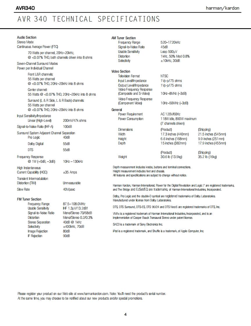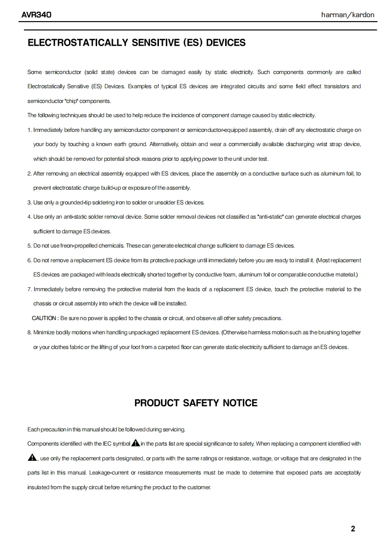 harman/kardonAVR3407X 55W 7.1 CHANNEL AV RECEIVERSERVICE MANUALWR国THE BRIDGE四四L0GIC77 CH MUS日⊙⊙⊙⊙d回回▣harman/kardon⊙⊙⊙CONTENTSESDWARNING..TECH TIP HK2003-01.......28LEAKAGE TESTING...3DISASSEMBLY..............BASIC SPECIFICATIONS.........UNIT EXPLODED VIEW...............32PACKAGING.......5EXPLODED VIEW PARTS LIST...............33FRONT PANEL CONTROLS..............6AMP BIAS ADJUSTMENT.......................34REAR PANEL CONNECTIONS...............9BLOCK DIAGRAM......................35REMOTE CONTROL FUNCTIONS..12ELECTRICAL PARTS LIST.............36CONNECTIONS........................16PCB DRAWINGS......................80OPERATION.......19SEMICONDUCTOR PINOUTS................86TROUBLESHOOTING GUIDE.................26SCHEMATICS......178PROCESSOR RESET..26WIRING DIAGRAM............186BULLETIN HK2006-01.............27hamman/kardon,Inc.250 Crossways Park Dr.Woodbury,New York 11797Rev110/2006