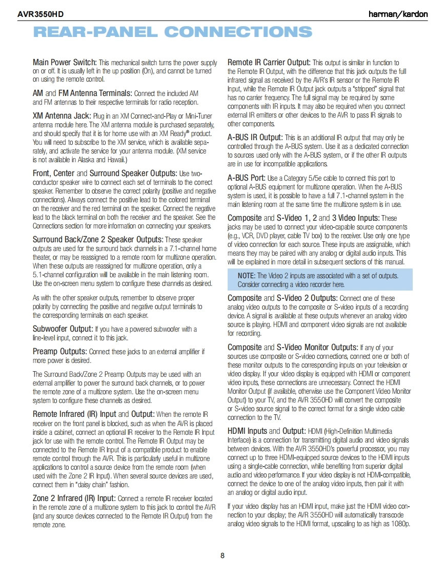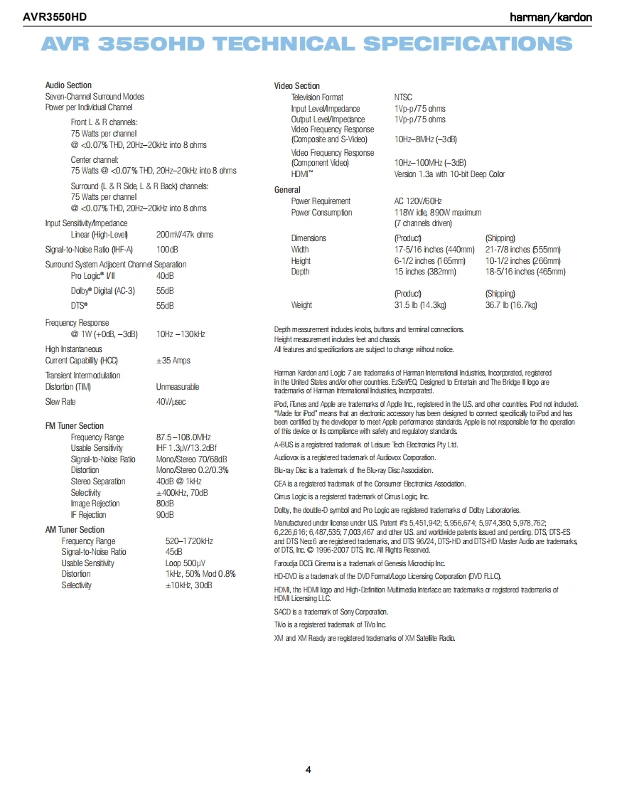 harman/kardonAVR 3550HD7X 75W 7.1 CHANNEL AN RECEIVERSERVICE MANUALANR四HOMEDIA SERVER四口回LOGIC 7 MOVIEharman/kardonCONTENTSESD WARNINGDISASSEMBLY....25LEAKAGE TESTING........3UNIT EXPLODED VIEW.........................26BASIC SPECIFICATIONS.................4EXPLODED VIEW PARTS LIST...............27PACKAGING............5AMP BIAS ADJUSTMENT..................28FRONT PANEL CONTROLS.....6BLOCK DIAGRAM..........29REAR PANEL CONNECTIONS.....8ELECTRICAL PARTS LIST...................30REMOTE CONTROL FUNCTIONS..........11PCB DRAWINGS...............72CONNECTIONS.........14SEMICONDUCTOR PINOUTS.80OPERATION.........18SCHEMATICS............199TROUBLESHOOTING GUIDE.23WIRING DIAGRAM.............…213PROCESSOR RESET................24harman/kardon,Inc.250 Crossways Park Dr.Released 2008Woodbury,New York 11797Rev012/2008Discontinued XXXX