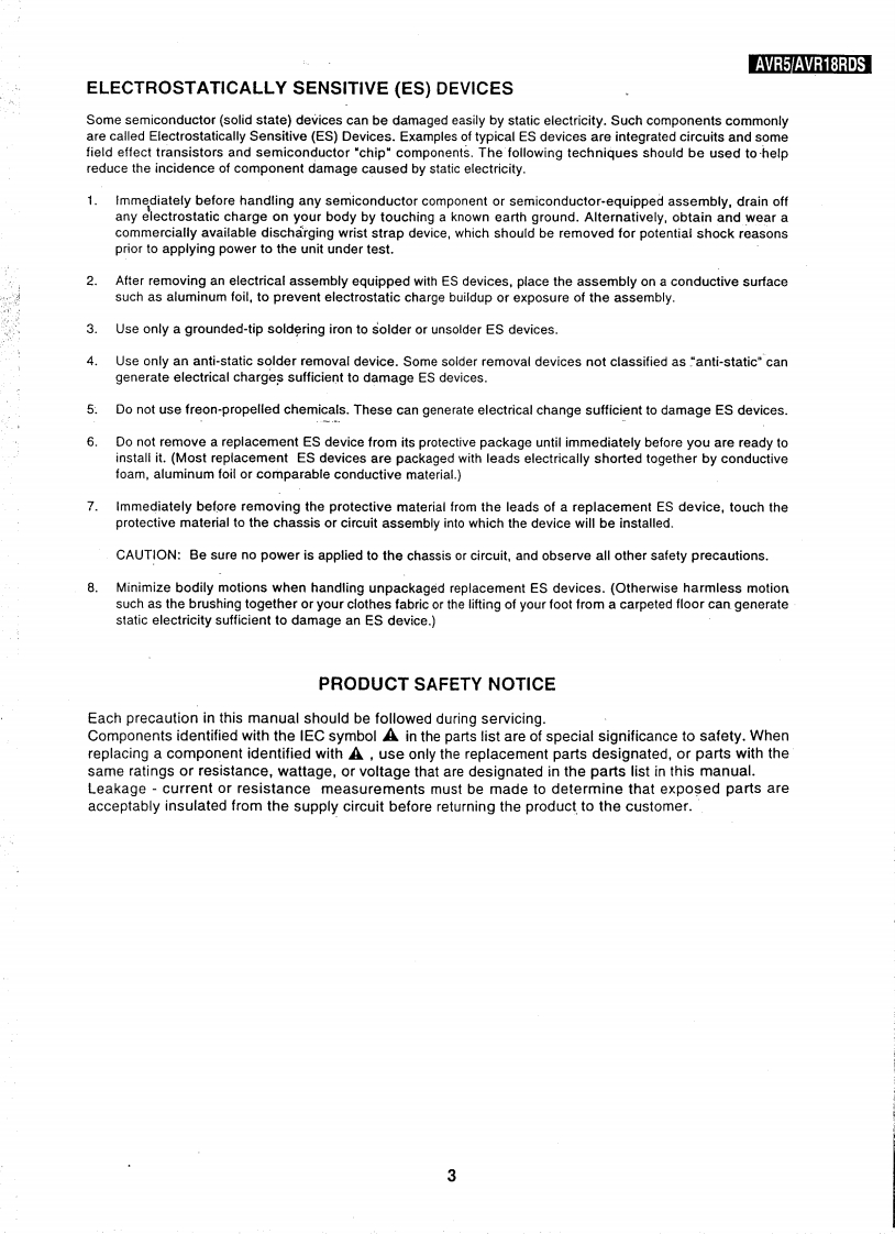 The Harman KardonModel AVR5/AVR18RDSManual AAUDIO AND VIDEO RECEIVERTechnical Manual666@@@CONTENTSSPECIFICATIONS...........DISASSEMBLY PROCEDURES......22ELECTROSTATICALLY SENSITIVE (ES)DEVICE..............3EXPLODED VIEW...................................…25LEAKAGE TEST............…4PRINCIPAL SCREW LOCATIONS..................................27ALIGNMENT PROCEDURES............ELECTRICAL PARTS LIST......................................30TEST EQUIPMENT REQUIRED......................51 C BLOCK DIAGRAMS…56ALGNMENT AND TEST POINTS................5P.C.BOARDS...............66CONTROLS AND FUNCTIONS..............8SCHEMATIC DIAGRAMS.4…70CIRCUIT DESCRIPTION..11WIRING DIAGRAM-.......-....…77BLOCK DIAGRAM…21PACKING MATERIAL AND PARTS LIST...........78harman/kardonParts and Service Office250 Crossways Park Dr,Woodbury,N.Y.117971112 AVR5/AVR18RDS 1200 Printed in Japan