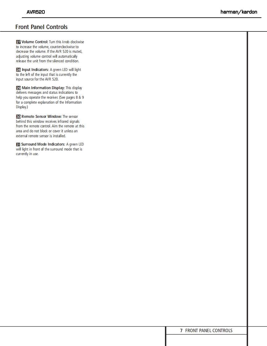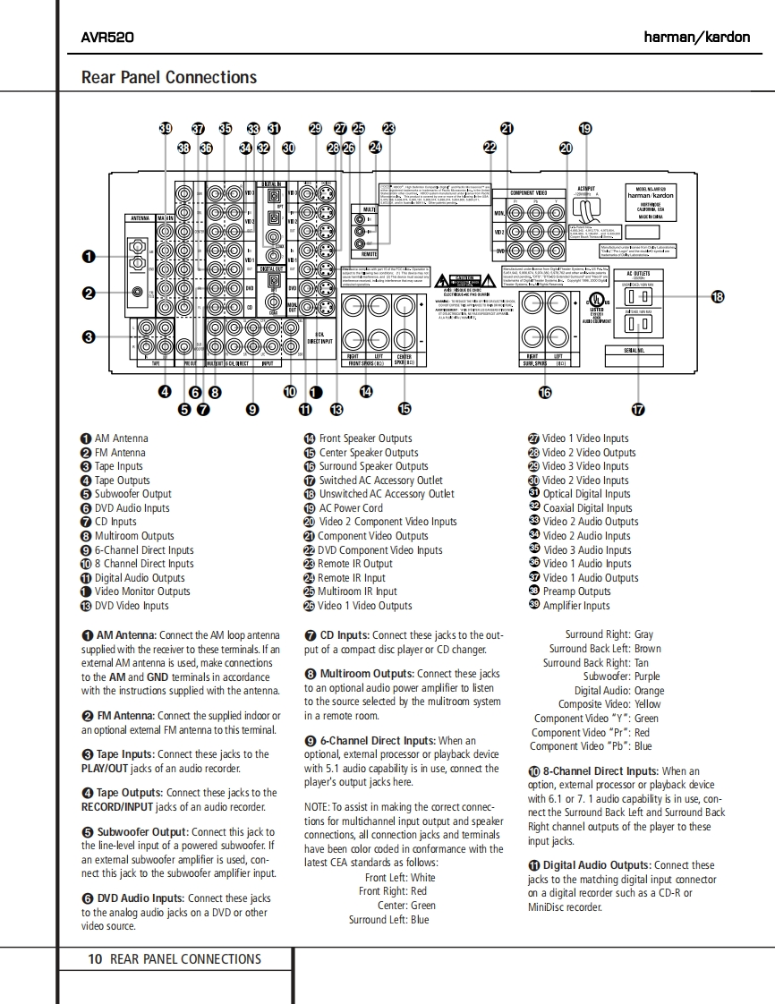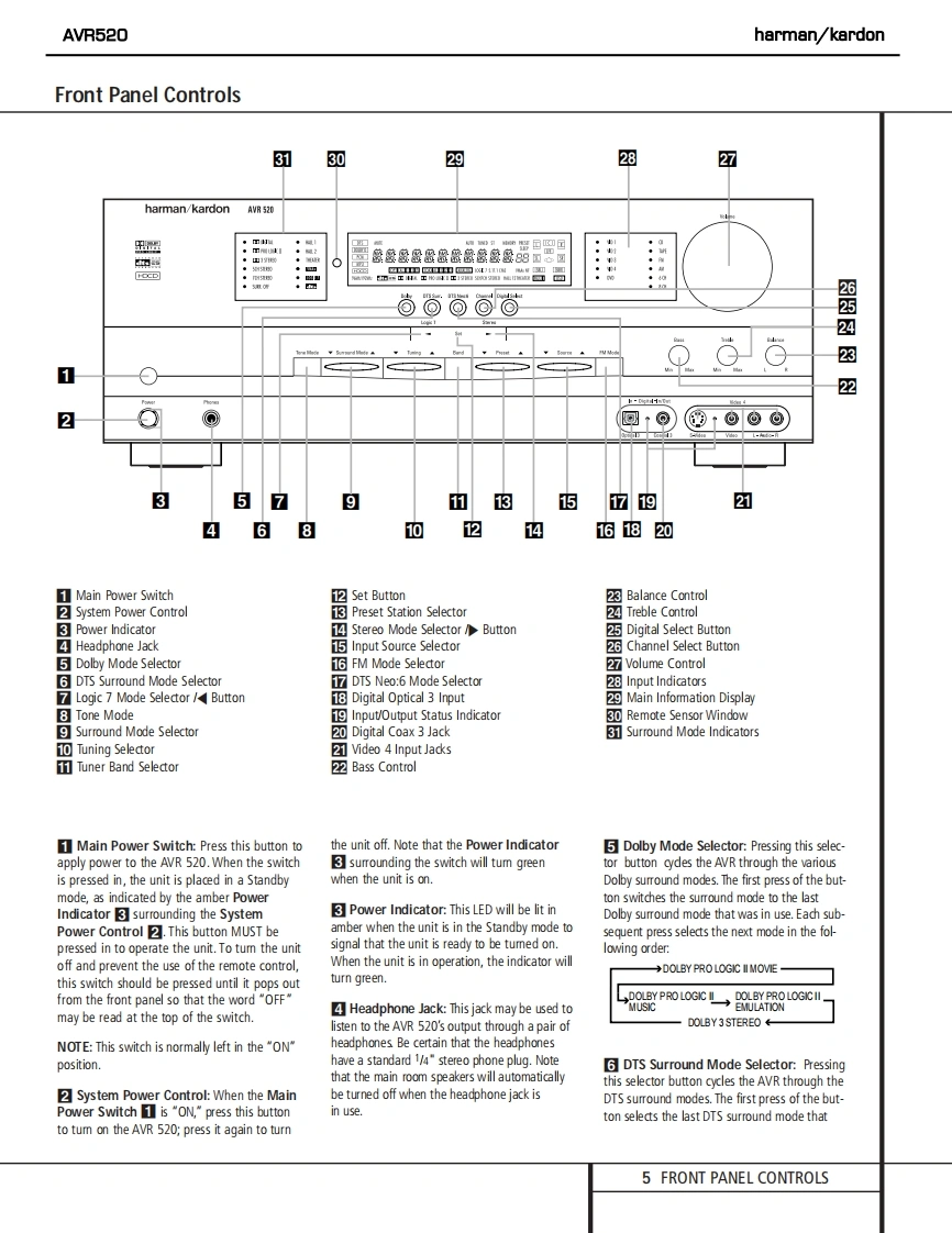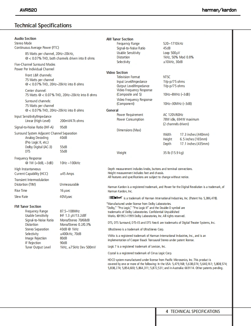 harman/kardonAVR520AM DOLBY DIGITAL RECEIVERSERVICE MANUALhamian/kardon AVR520De))*7ss a·。的。。OCONTENTSESD WARNING...............2EXPLODED VIEW PARTS LIST...............17LEAKAGE TESTING.........3BLOCK DIAGRAM.18BASIC SPECIFICATIONS.....4BULLETIN HK2003-07.....19FRONT PANEL CONTROLS..5TECH TIP HKTT2003-01...............21REAR PANEL CONNECTIONS..10IDLE CURRENT ADJUSTMENT...............22REMOTE CONTROL FUNCTIONS..12ELECTRICAL PARTS LIST..............5TROUBLESHOOTING GUIDE..................15SCHEMATICS..........73PROCESSOR RESET.................15WIRING DIAGRAM..9UNIT EXPLODED VIEW.......................16PACKAGE..95harman/kardon,Inc.250 Crossways Park Dr.Woodbury,New York 11797Rev4-2/2004
