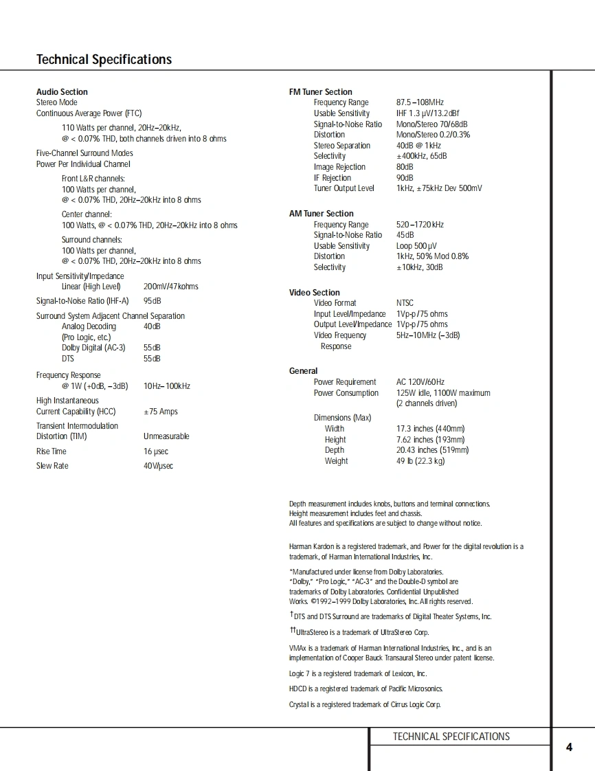 harman/kardonAVR7000A/V DOLBY DIGITAL RECEIVERPRELIMINARYSERVICE MANUALharman/kardonDVD PLAYERCONTENTSESp WARNING..2TROUBLESHOOTING GUIDE..............27LEAKAGE TESTING...............3UNIT EXPLODED VIEW.............28BASIC SPECIFICATIONS.................4EXPLODED VIEW...................29DETAILED SPECIFICATIONS6BLOCK DIAGRAM.30FRONT PANEL CONTROLS...13pcB DRAWINGS.....................31REAR PANEL CONNECTIONS...........15MECHANICAL PARTS LIST.................47REMOTE CONTROL FUNCTIONS..17ELECTRICAL PARTS LIST.67SERVICE BULLETINS/TECH TIPS.........20SCHEMATICS........70IDLE CURRENT ADJUST....................23WIRING DIAGRAM..........................94TUNER ALIGNMENT...............24PACKAGE..95harman/kardon,Inc.250 Crossways Park Dr.Woodbury,New York 11797Rev1-11/2000