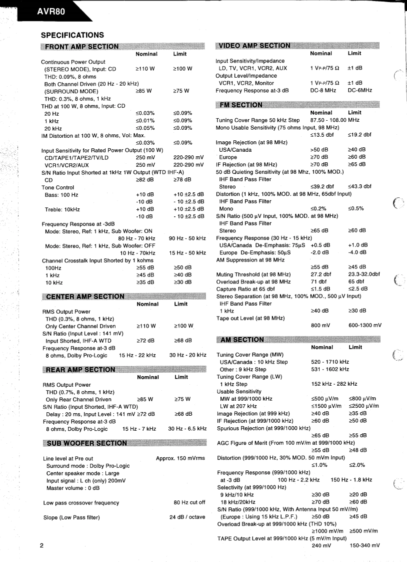 哈曼卡顿Harman-Kardon-AVR-80_Mk2-维修手册