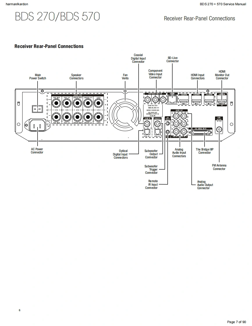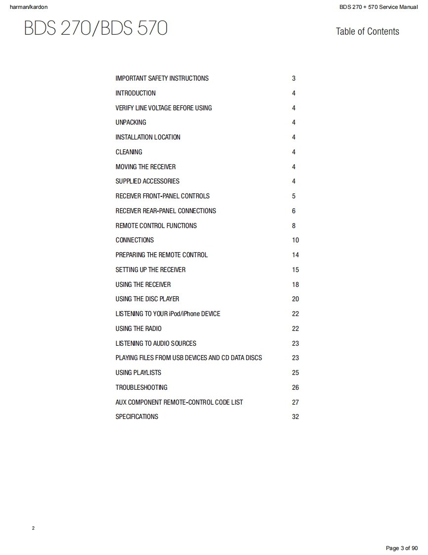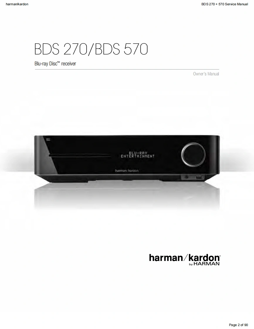 harman/kardonService ManualHK BDS 2702.1-channel 3-D Blu-ray home cinema receiverHK BDS 5705.1-channel 3-D Blu-ray home cinema receiverBLU-RAY 3Dharman/kardon9U9U小KgiqouCONTENTSOWNER'S MANUAL2-34EXPLODED VIEW AND PARTS,BDS 570 48TROUBLESHOOTING GUIDE27EXPLODED VIEW AND PARTS,BDS 270 50BASIC SPECIFICATIONS33ELECTRICAL PARTS LIST53SOFTWARE UPGRADE PROCESS35PCB LAYOUT DRAWINGS57TROUBLESHOOTING CHARTS36WIRING DIAGRAM65SCHEMATIC DIAGRAMS66-90Released EU2011Harman Consumer Group,Inc.Rev1,10/20118500 Balboa BoulevardNorthridge,California 91329