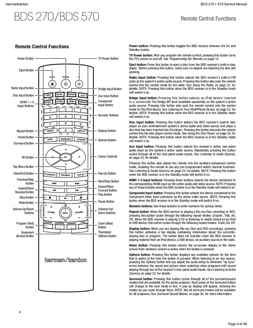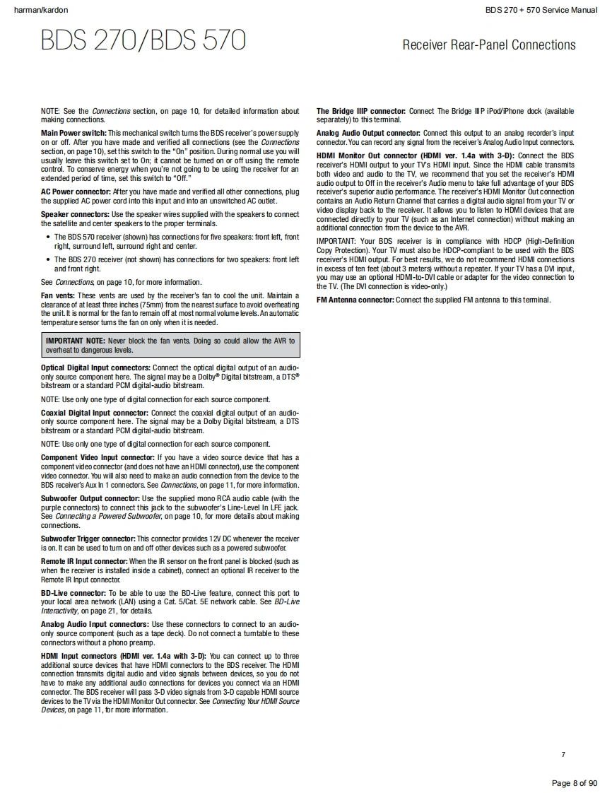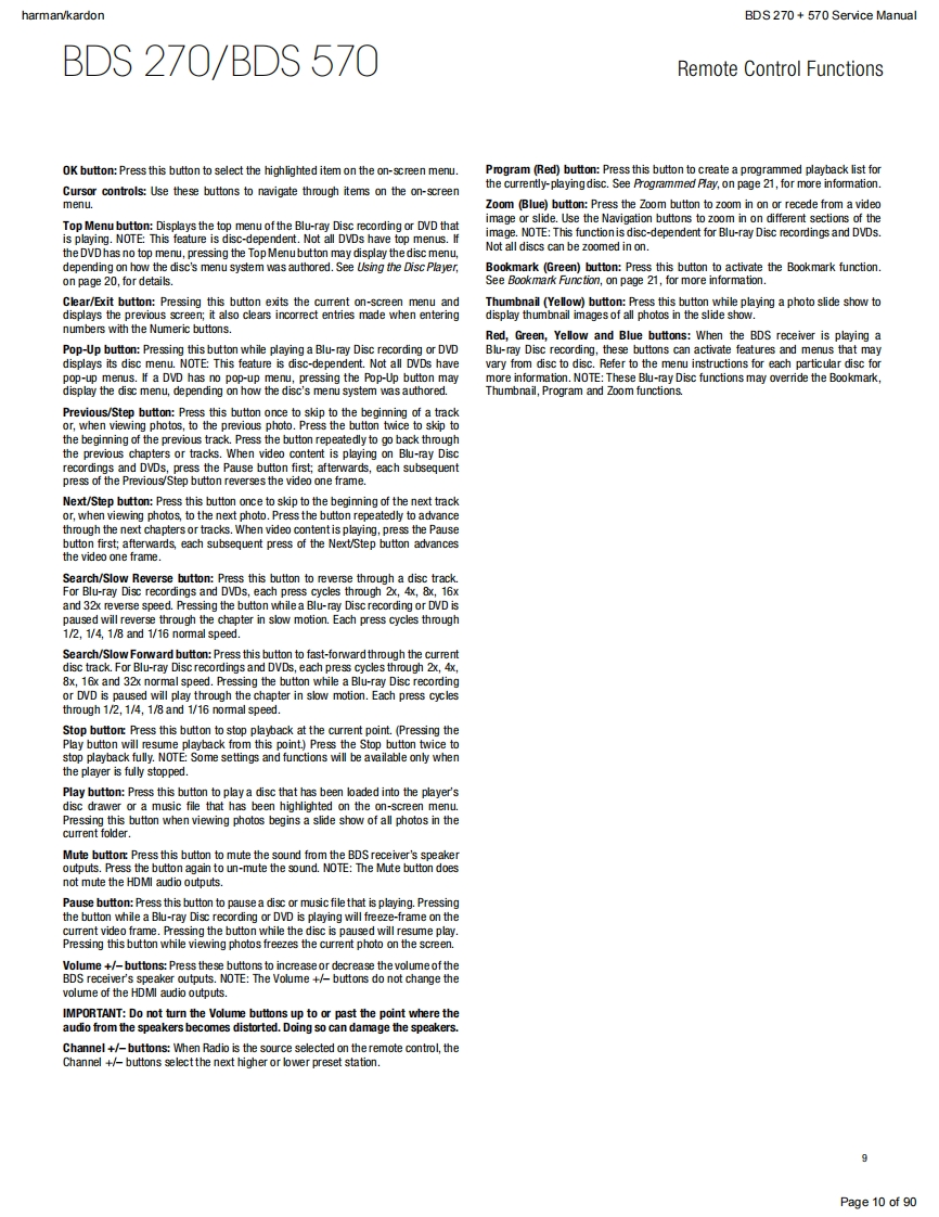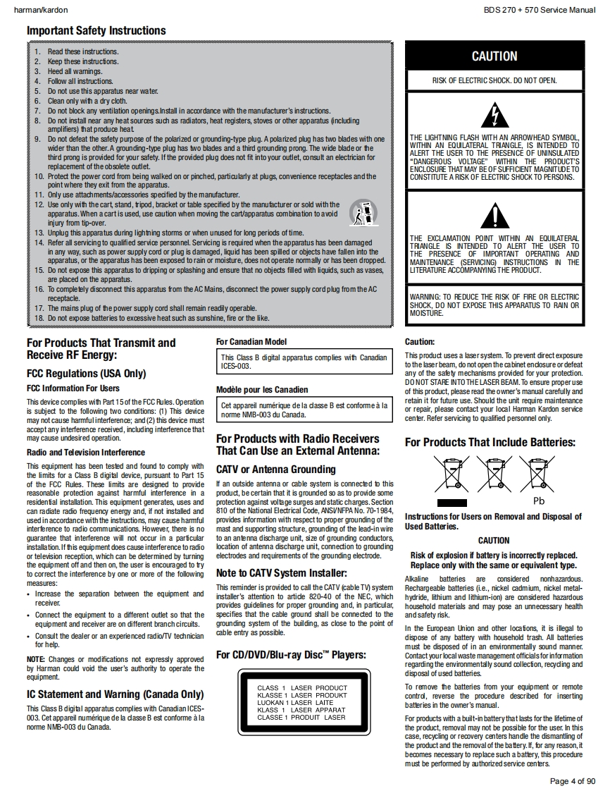 harman/kardonService ManualHK BDS 2702.1-channel 3-D Blu-ray home cinema receiverHK BDS 5705.1-channel 3-D Blu-ray home cinema receiverBLU-RAY 3Dharman/kardon9U9U小KgiqouCONTENTSOWNER'S MANUAL2-34EXPLODED VIEW AND PARTS,BDS 570 48TROUBLESHOOTING GUIDE27EXPLODED VIEW AND PARTS,BDS 270 50BASIC SPECIFICATIONS33ELECTRICAL PARTS LIST53SOFTWARE UPGRADE PROCESS35PCB LAYOUT DRAWINGS57TROUBLESHOOTING CHARTS36WIRING DIAGRAM65SCHEMATIC DIAGRAMS66-90Released EU2011Harman Consumer Group,Inc.Rev1,10/20118500 Balboa BoulevardNorthridge,California 91329