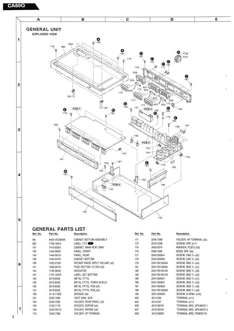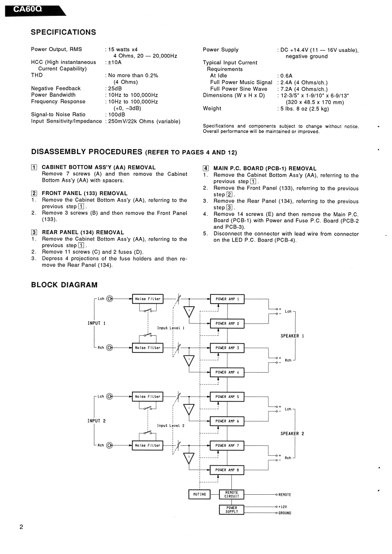 The Harman KardonModel CA60QManual 173AHIGH FIDELITY CAR AMPLIFIERTechnical ManualD08是The following marks found in the parts list of this manual identifythe models as follows.UA:North America Area modelInternational model:Japan modelharman/kardon