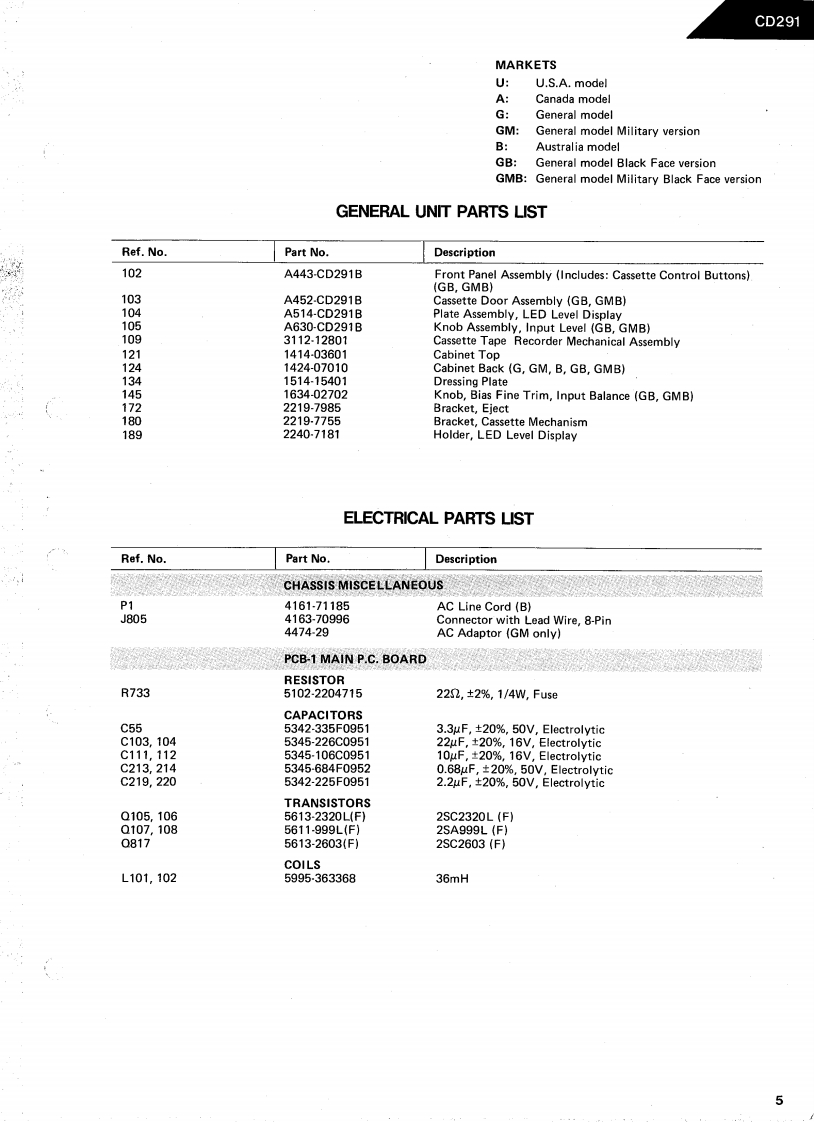 8:The Harman KardonModel CD291Manual No.60CULTRAWIDEBAND LINEAR PHASE CASSETTE DECKTechnical ManualSUPPLEMENTARY MANUALTHE CASSETTE MECHANISM WAS REVISED AT SERIAL NUMBER 9101.FOLLOWING IS THECOMPLETE PARTS LIST AND ASSEMBLY DRAWINGS OF THE REVISED CASSETTE MECHANISM.ALSO,SOME REVISIONS IN THE CIRCUITRY ARE INCORPORATE.REFER TO TECHNICAL MANUALCD291NO.60A FOR ALL OTHER REPLACEMENT PARTS AND SERVICE INFORMATION EXCEPT FOR THECHANGES AS NOTED IN THIS SUPPLEMENT.harman/kardon240 CROSSWAYS PARK WEST.WOODBURY.N.Y.117971112-H15260C7 P-088412 1650 PRINTED IN JAPAN