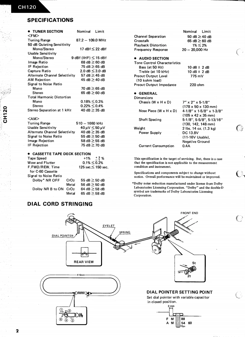 The Harman KardonModel CH120Manual 90AHIGH FIDELITY CASSETTE DECK/TUNERTechnical ManualGH120HIGN FOOI (ASSETL136LCH120haman/kardonharman/kardon240 Crossways Park West.Woodbury.N.Y.117971112-H15290A4 P.078506 1450 Printed in Japan