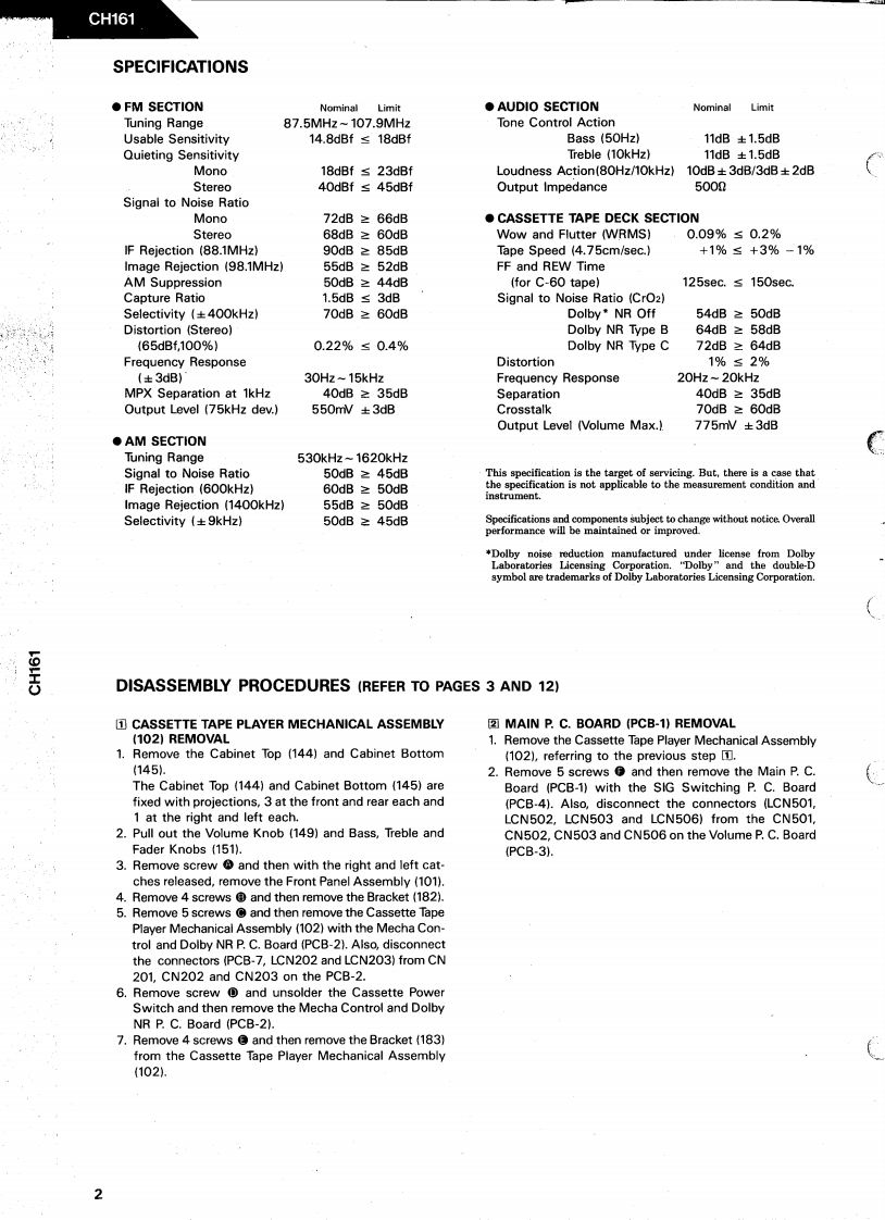 The Harman KardonModel CH161Manual 102AHIGH FIDELITY CASSETTE DECK/TUNERTechnical Manual000om0e可■haiman kardonHIGH FIDELFTY CASSETTE CECK/TUNER CH181碳w图CH161harman/kardon240 Crossways Park West,Woodbury,N.Y.117971112-3152102A6P.0886051850Printed in Japan
