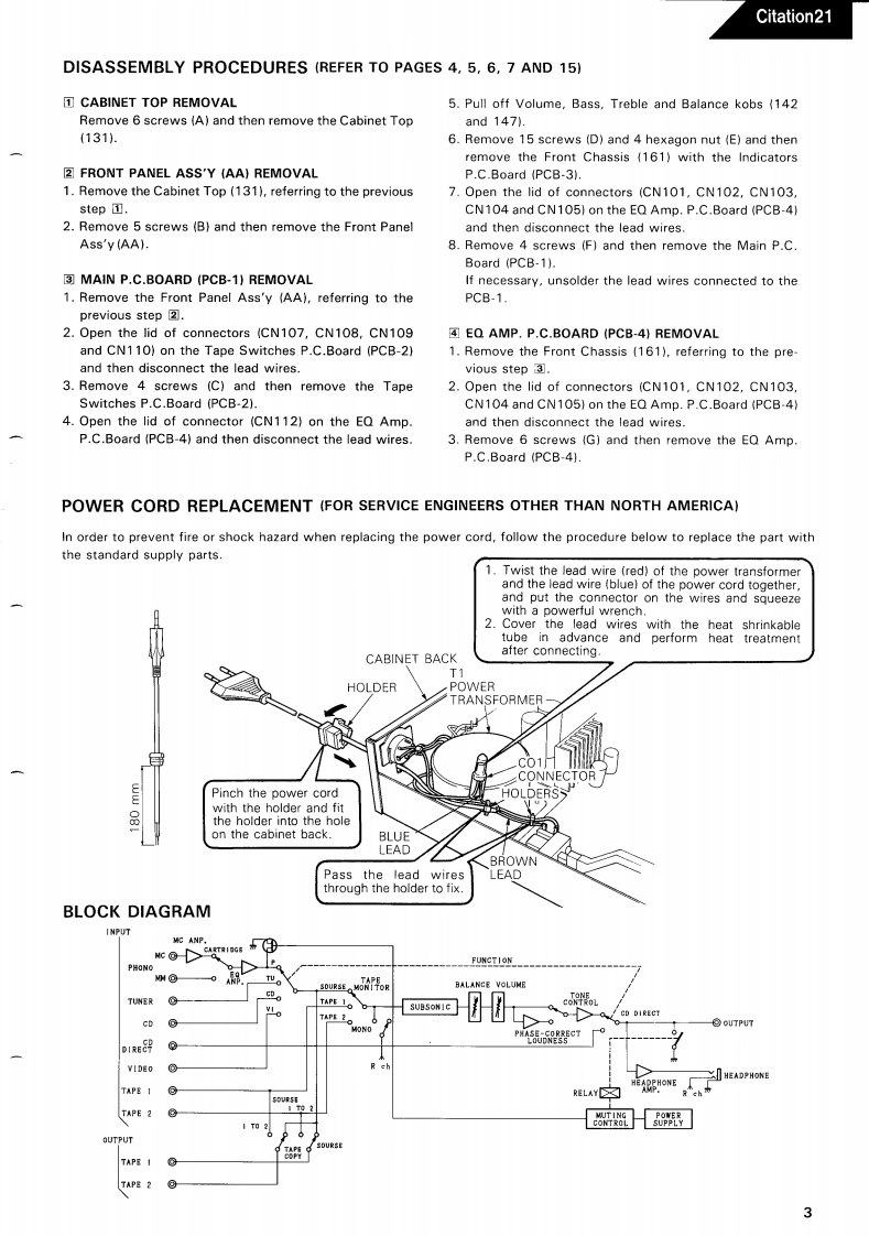 The Harman KardonModel Citation21Manual 112ASTEREO PREAMPLIFIERTechnical ManualCitation:stsr,·sThe following marks found in the parts list of this manual identifythe models as follows.North America area modelG●:General modelJapan modelharman/kardon240CrosswaysParkWest,Woodbury.N.Y.117971112-3152112A6P-0887061500 Printed in Jap3n