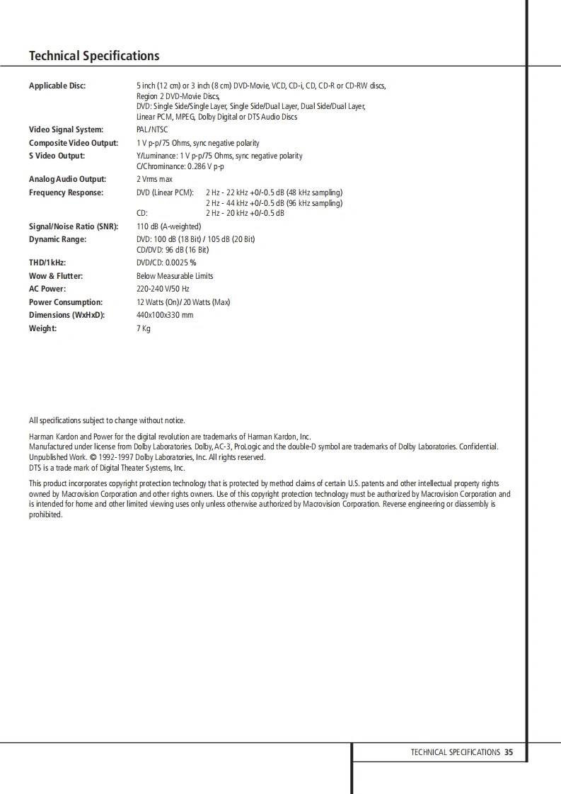 哈曼卡顿Harman-Kardon-DVD-20-维修手册找手册网16天前发布关注私信3.28MB38页034哈曼卡顿Harman-Kardon-DVD-20-维修手册此内容为付费资源,请付费后查看¥19¥21黄金会员免费钻石会员免费登录购买付费资源 第1页 / 共38页 第2页 / 共38页 第3页 / 共38页 第4页 / 共38页 第5页 / 共38页 第6页 / 共38页 第7页 / 共38页 第8页 / 共38页 第9页 / 共38页 第10页 / 共38页 试读已结束,还剩28页,您可下载完整版后进行离线阅读 THE END哈曼卡顿/飞利浦 文本预览 DVD20Digital Versatile Disc PlayerDolby Digital/DTS/PCM/MP3 decodingPRELIMINARYService-Technical Manual留严a705Harman International SNC-Haman Consumer International 2,route de Tours 72500 Chateau du Loir FRANCE 查看更多 收起部分 喜欢就支持一下吧收藏