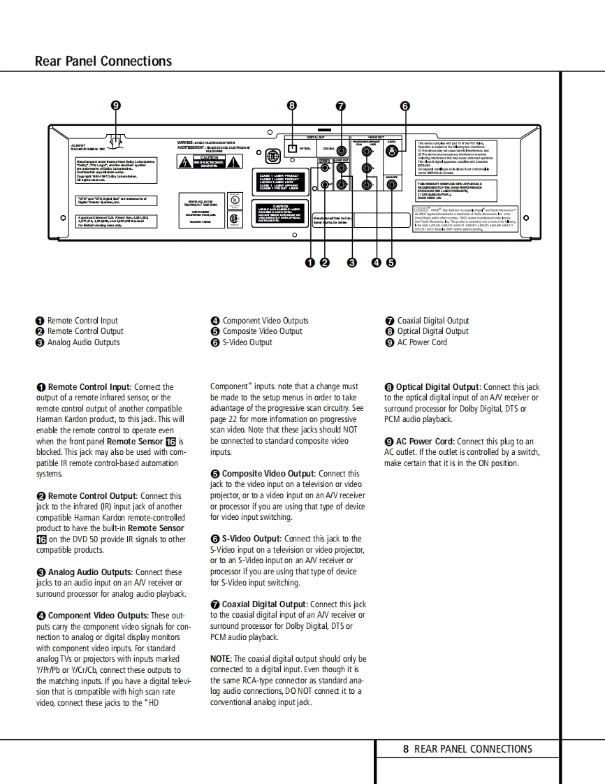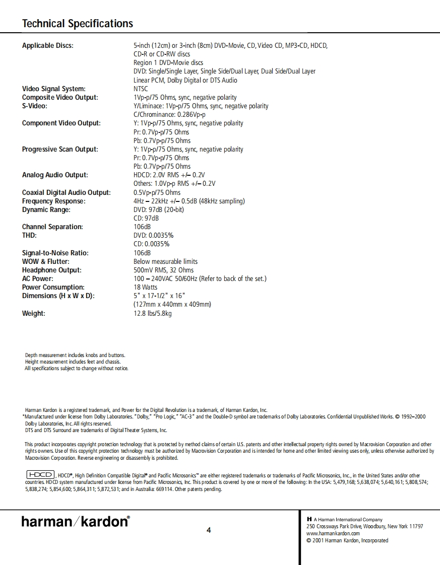 harman kardonModel DVD 505 Disc DVD/CD/CD-R/CD-RWNVCD MP3 ChangerService Manualharman/kardon050名123s938dtsContentsPRODUCT SAFETY SERVICE GUIDELINES..........2DECK MECHANISM DISASSEMBLY............24SERVICE PRECAUTIONS...............3DECK MECHANISM ADJUSTMENT...................27SPECIFICATIONS...............4MECHANICAL PARTS LIST.................29FRONT PANEL CONTROLS.....................5DETAILED TROUBLESHOOTING GUIDE............30INFORMATION DISPLAY..........6BULLETIN HK2001-05........40REAR PANEL CONNECTIONS......................8BULLETIN HK2002-02......43REMOTE CONTROL..................9BLOCK DIAGRAMS............45INSTALLATION/CONNECTIONS.......12WAVEFORMS.........50BASIC TROUBLESHOOTING GUIDE...................17VOLTAGE CHART..........51DISASSEMBLY....18PCB DRAWINGS......52OVERALL EXPLODED VIEWS............20ELECTRICAL PARTS LIST........................57DECK MECHANISM EXPLODED VIEW................22SCHEMATICS.....68DECK MECHANISM PARTS LOCATOR................23PACKING..........T6harman/kardon,Inc.250 Crossways Park Dr.Woodbury,New York 11797Rev03/2003
