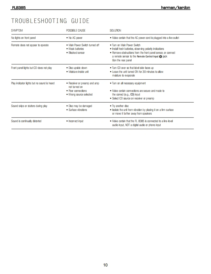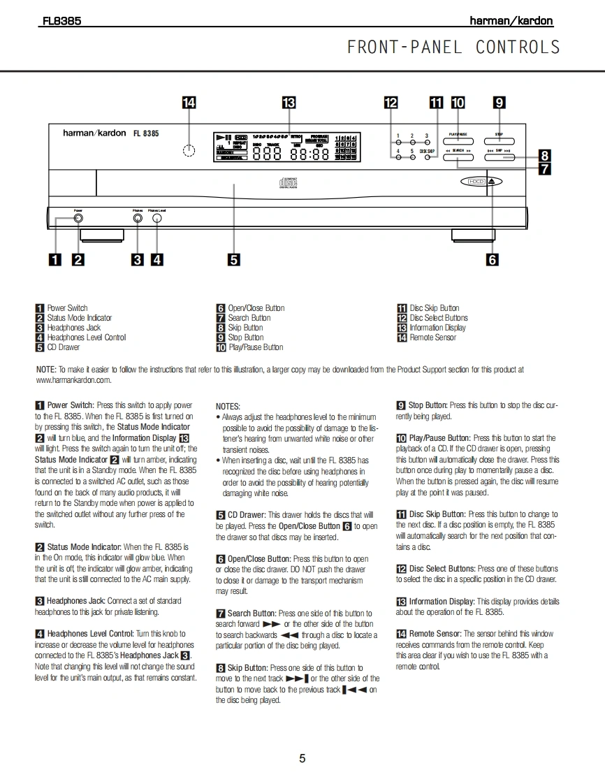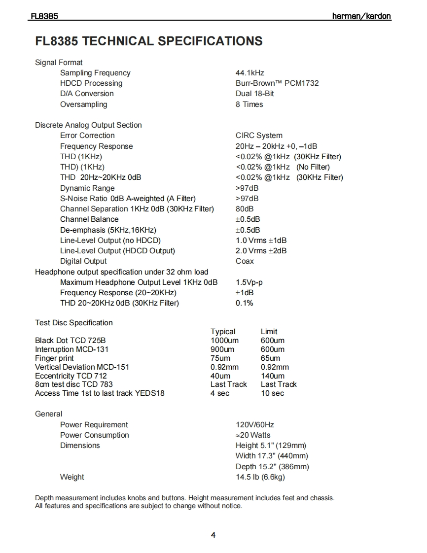harman/kardonModel FL83855 Disc Compact Disc ChangerSERVICE MANUALharman/kardon Fl8335729國CONTENTSLASER BEAM SAFETY PRECAUTIONS.........2TEST PROCEDURE...........................14OTHER PRECAUTIONS..3CIRCUIT DESCRIPTION.................16SPECIFICATIONS.....4DETAILED TROUBLESHOOTING...............20FRONT PANEL CONTROLS.............5SEMICONDUCTOR IDENTIFICATION...........26REAR PANEL CONNECTIONS..........8MECHANICAL PARTS LIST.......49REMOTE CONTROL FUNCTIONS...............9ELECTRICAL PARTS LIST .......................51BASIC TROUBLESHOOTING GUIDE............10PRINTED CIRCUIT BOARDS ...................60GENERAL UNIT EXPLODED VIEW............11SCHEMATIC DIAGRAMS..................645 CD MECHANISM EXPLODED VIEW ..........12PACKAGE.oBLOCK DIAGRAM...................13harman/kardon,Inc.250 Crossways Park Dr.Woodbury,New York 11797Rev13/2004