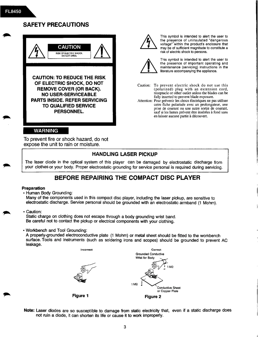 The Harman KardonModel FL8450Manual ACOMPACT DISC CHANGERTechnical Manualharman/kardon FL8450酸06606■CONTENTS■LASER BEAM SAFETY PRECAUTIONS ...........2TROUBLESHOOTING…25BEFORE REPAIRING THE COMPACT DISCPRINTED CIRCUIT BOARDS.........34P%AYER…3GENERAL UNIT EXPLODED VIEW................37LEAKAGE TEST…4GENERAL UNIT PARTS LIST................44SPECIFICATIONS…5ELECTRICAL PARTS LIST..................46CONTROL AND FUNCTIONS..................IC FUNCTIONAL BLOCK DIAGRAM4…50BLOCK DIAGRAM…9PACKAGE44…56DISASSEMBLY INSTRUCTIONS.........11NIRING DIAGRAM…57PICKUP REPLACEMENT.................13SCHEMATIC DIAGRAM…58CIRCUIT DESCRIPTION........................15TRANSISTOR AND DIODE LEADALIGNMENT AND ADJUSTMENT .................2IDENTIFICATION..................59DANGER:Invisible laser radiation when open and interlock failed or defeated.AVOID DIRECT EXPOSURE TO BEAM.harman/kardonParts and Service Office80 Crossways Park West,Woodbury,N.Y.117971112-FL8450A P9502 1500 Printed in KoreaS D.M12 -F 84S