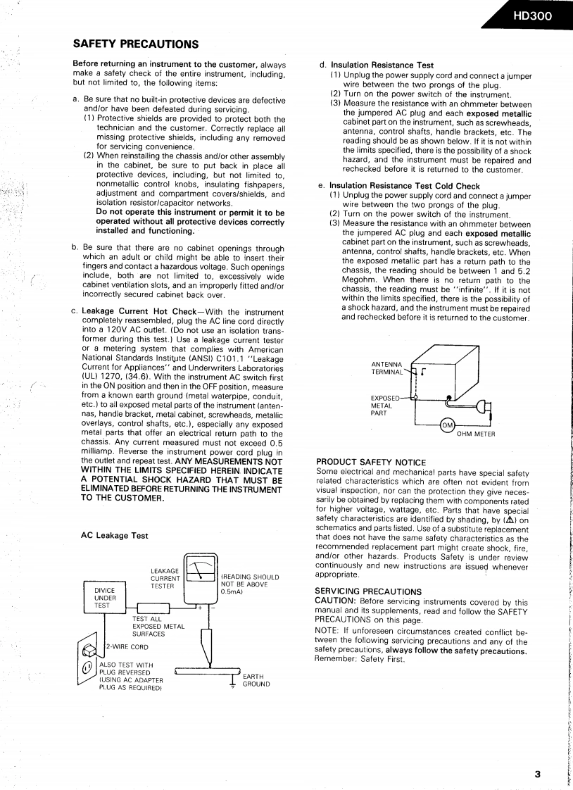 The Harman KardonModel HD300Manual 109ACOMPACT DISC PLAYERHD300Technical Manual30CLASS 1 LASER PRODUCTBe Careful of the Laser PickupProduct complies with DHHS rules CFR subchapter J partAlthough you cannot see it from the outside,a laser pickup is1040:10 at date of manufacture.located under the disc tray and a precision lens is built in it.Since the laser pickup,including the lens element,isDANGER-invisible laser radiation when open and interlockespecially sensitive to dust,keep the disc tray closed whenfailed or defeated.Avoid direct exposure to the beam.not in use.Also do not put your hand inside the unit.CAUTION-use of all controls,adjustments or performanceof procedures other than those specified herein may result inhazardous radiation exposure.CLASS 1LASER PRODUCTharman/kardons Park West,Woodb