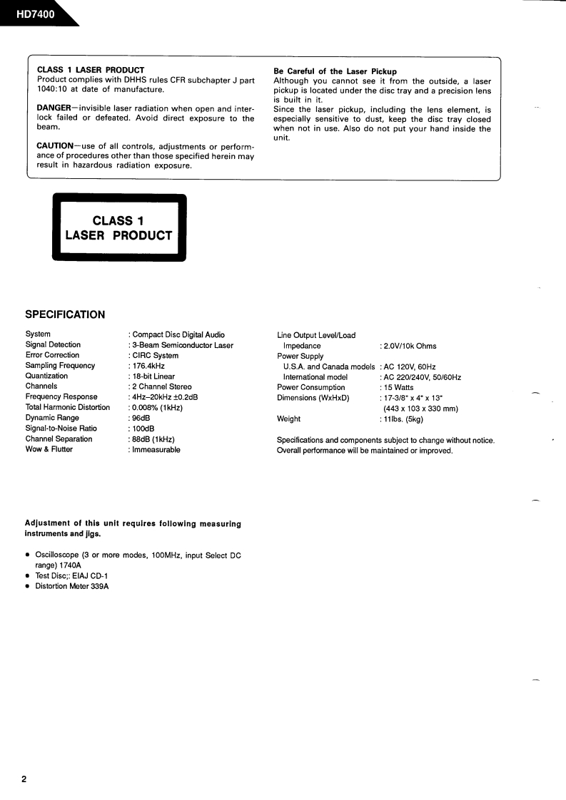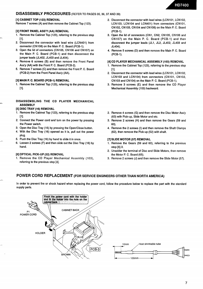 The Harman KardonModel HD7400Manual 152ACOMPACT DISC PLAYERTechnical ManualHD7400c:c:酸88-88:68harman/kardonHD7400The following marks found in the parts list of this manualIdentify the models as follows.North America area model Black versionInternational model Black versionAustralia model Black versionharman/kardon