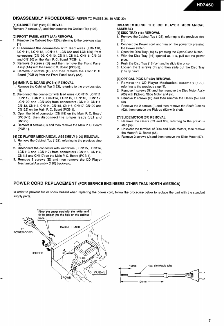 The Harman KardonModel HD7450Manual 160ACOMPACT DISC PLAYERTechnical Manualharman kardon HD745088689明694非4·958年西4川号4线生净非wThe following marks found in the parts list of this manualidentify the models as followsNorth America area model Black versionInternational modelInternational model Black versionAustralia model Black versionAsia Oceania model Black versionharman/kardon