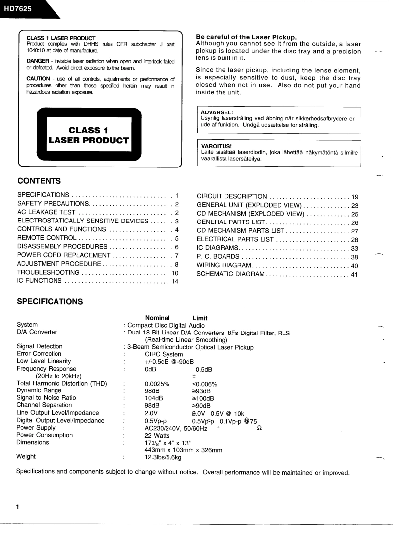 The Harman KardonModel HD7625Manual ACOMPACT DISC PLAYERTechnical Manualharman/kardon HD7625 compeThe following marks found in the parts list of this manualidentify the models as follows:歌:North America area model Black version®:International model Black versionGeneral Model®:General Model Black versionharman/kardon240 Crossways Park West,Woodbury,N.Y.117971112-HD7625-A P9307 1200 Printed in USA