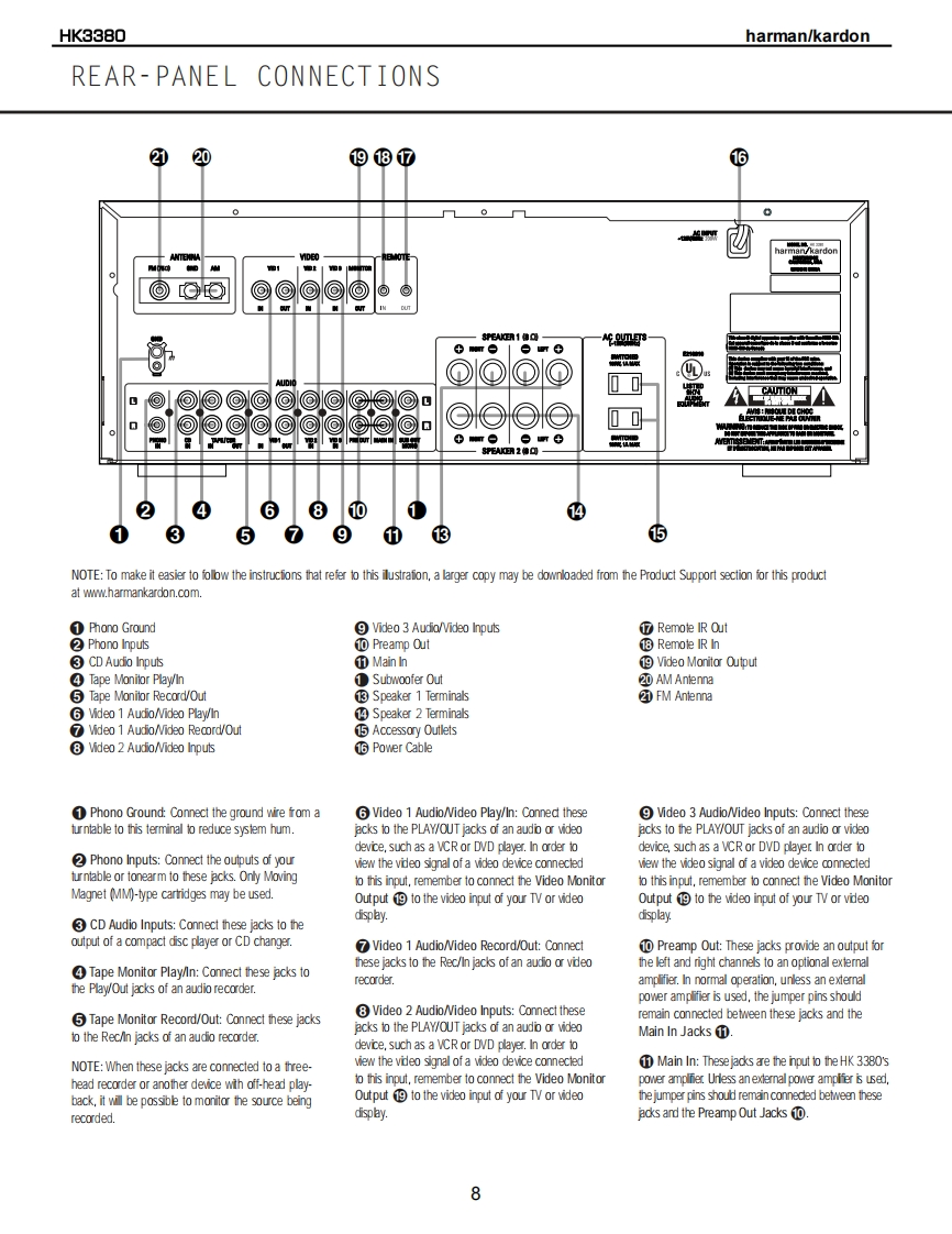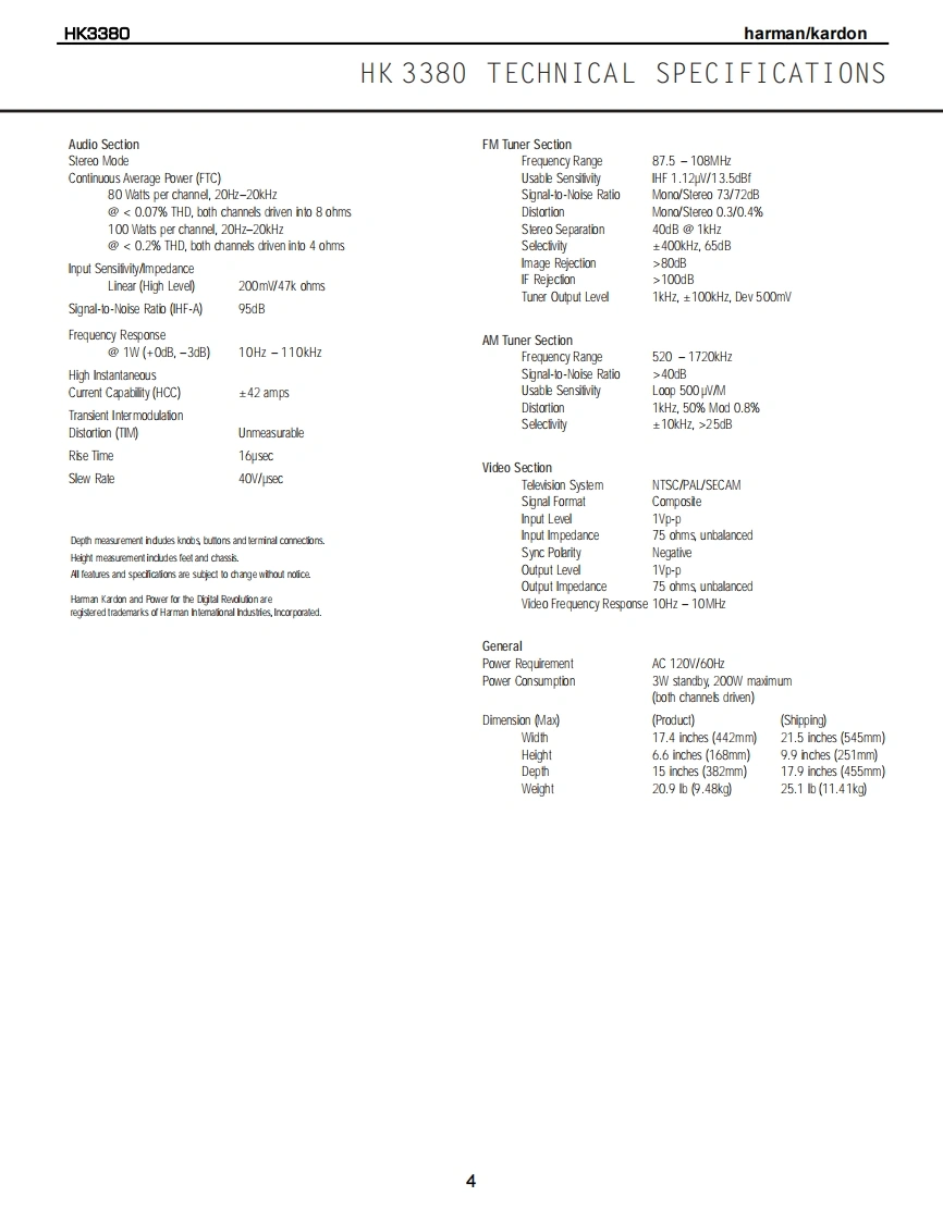 harman/kardonHK3380STEREO RECEIVERSERVICE MANUALHK338·m:FM87.50MHz01:⊙6⊙668⊙dharman/kardon⊙⊙⊙CONTENTSESD WARNING..DISASSEMBLY PROCEDURES.........17LEAKAGETESTING...........3EXPLODED VIEW...........................20SPECIFICATIONS.......4BLOCK DIAGRAM.FRONT PANEL CONTROLS....................5FRONT PANEL DISPLAY...2REAR PANEL CONNECTIONS.................8IC DESCRIPTIONS/PINOUTS.....................6REMOTE CONTROL FUNCTIONS..........10ELECTRICAL PARTS LIST......................0TROUBLESHOOTING GUIDE.................12PCB DRAWINGS...................45PROCESSOR RESET................12SCHEMATICSAMPLIFIER BIAS ADJUSTMENT.................13WIRING DIAGRAM.............5.3BULLETIN HK2003-10..14PACKAGE.....54BULLETIN HK2004-02.......16haman/kardon,Inc.250 Crossways Park Dr.Woodbury,New York 11797Rev18/2004