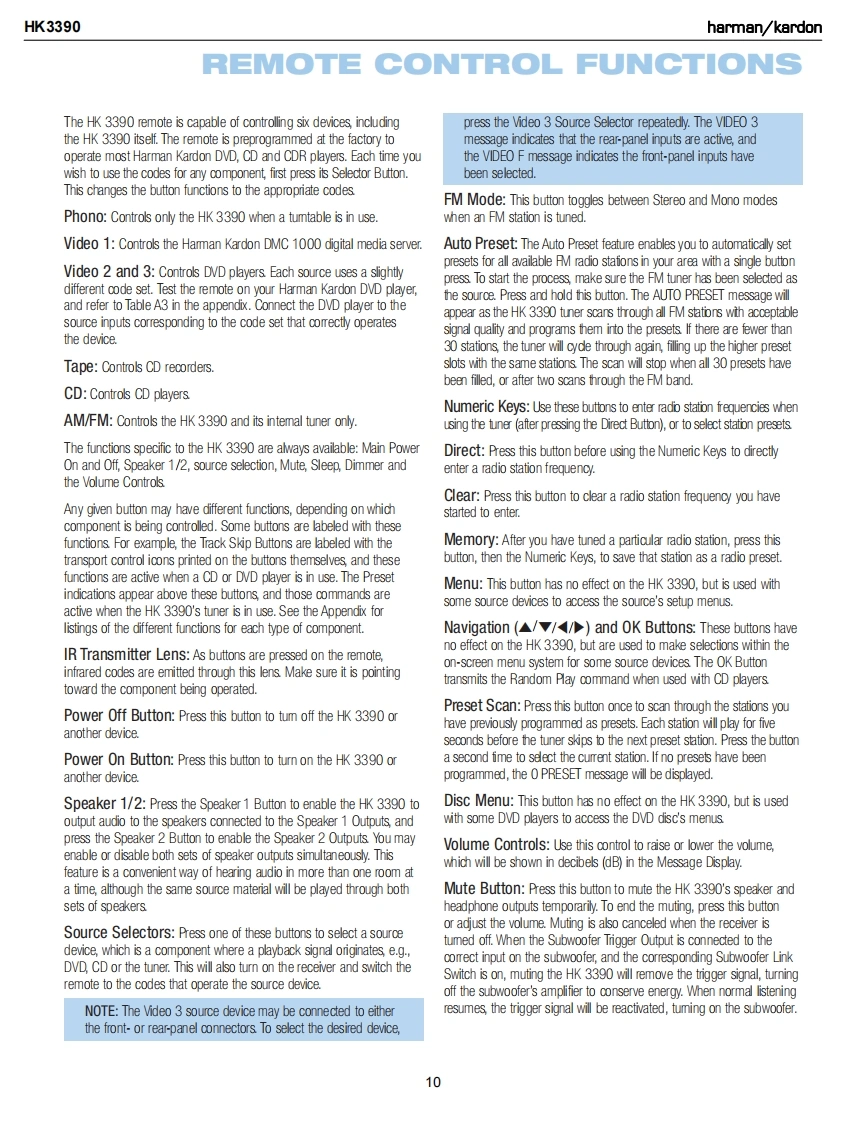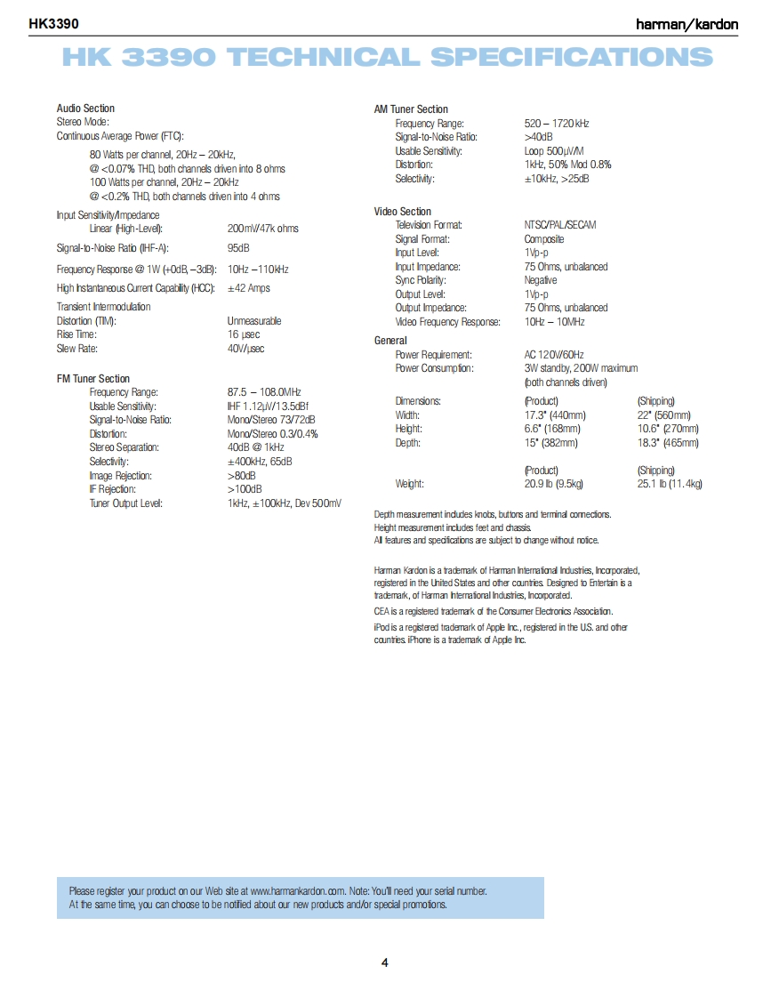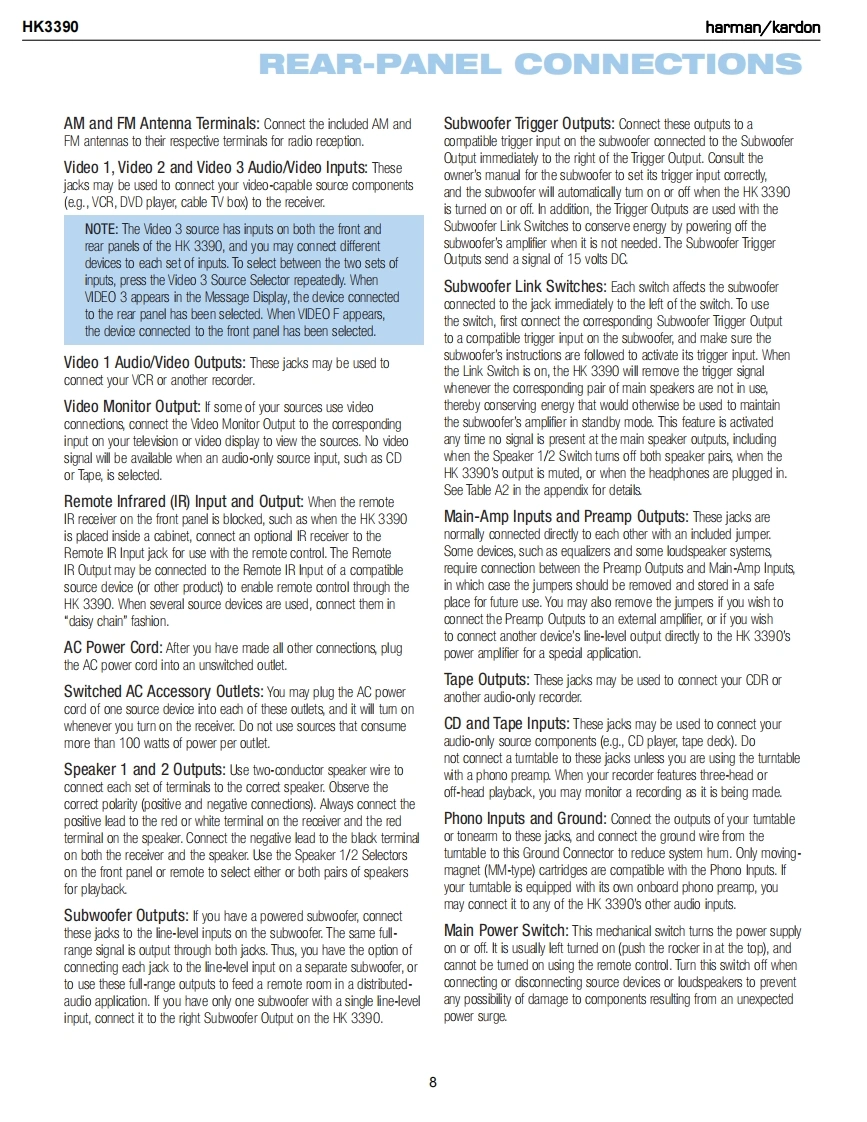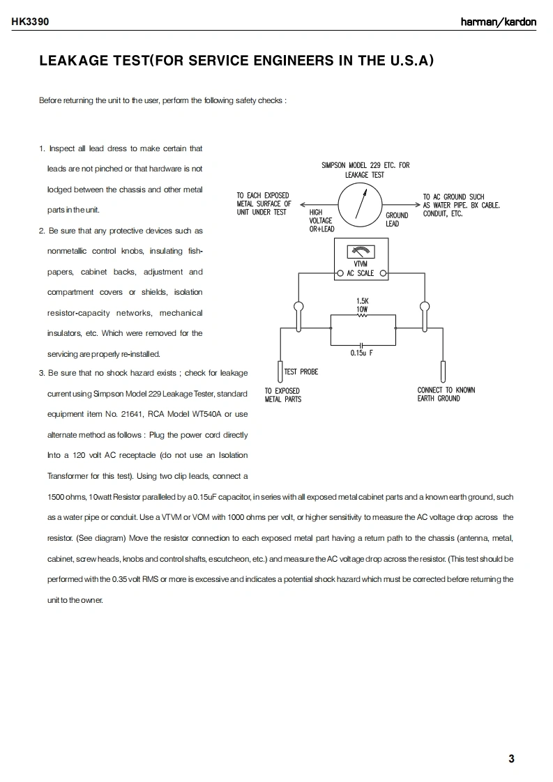 harman/kardonHK3390STEREO RECEIVERSERVICE MANUALHK SEOCD/ANALOGSPK 1 STEREOharman/kardonCONTENTSESD WARNING..2DISASSEMBLY........23LEAKAGE TESTING..3UNIT EXPLODED VIEW..............6BASIC SPECIFICATIONS....................4EXPLODED VIEW PARTS LIST...............27PACKAGING5.AMP BIAS ADJUSTMENT..............8FRONT PANEL CONTROLS......6BLOCK DIAGRAM...29REAR PANEL CONNECTIONS....8PCB DRAWINGS..........30REMOTE CONTROL FUNCTIONS..........10ELECTRICAL PARTS LIST...........36CONNECTIONS/INSTALLATION...........12SEMICONDUCTOR PINOUTS................53OPERATION.18SCHEMATICS.........71TROUBLESHOOTING GUIDE.................22WIRING DIAGRAM.......................74PROCESSOR RESET...................22hamman/kardon,Inc.250 Crossways Park Dr.Released 2008Woodbury,New York 11797Rev06/2008Discontinued XXXX