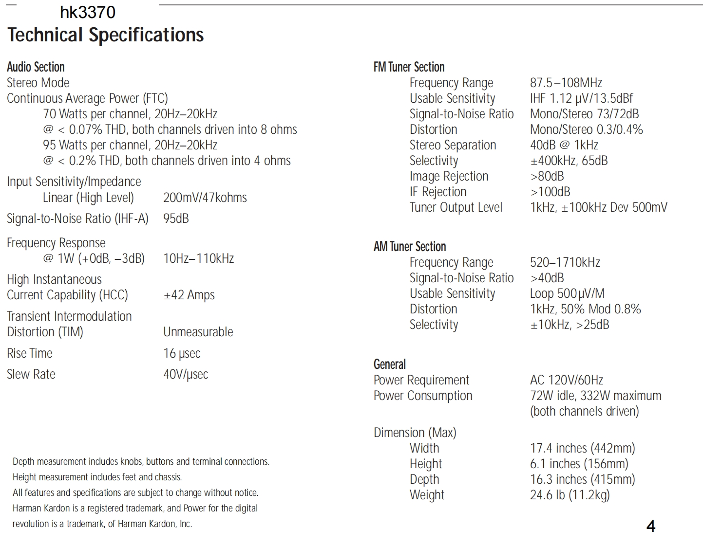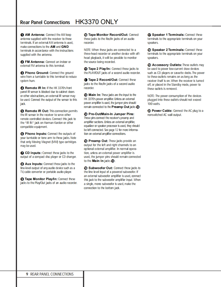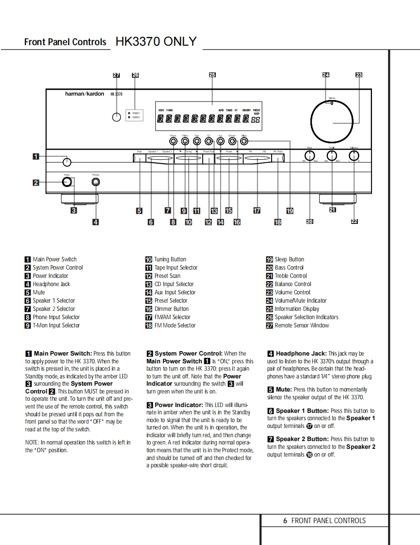 harman/kardonhk3370/3470STEREO RECEIVERPRELIMINARYSERVICE MANUALharman/kardon服服贸盟盈盈服服服服服BoooCONTENTSESD WARNING2BLOCK DIAGRAM....28LEAKAGE TESTING..3EXPLODED VIEW HK3370..29BASIC SPECIFICATIONS hk3370..4EXPLODED VIEW HK3470...................30BASIC SPECIFICATIONS hk3470................5DISASSEMBLY PROCEDURES...31FRONT PANEL CONTROLS hk3370............6MECHANICAL PARTS LIST HK3370.......39REAR PANEL CONNECTIONS hk3370........8ELECTRICAL PARTS LIST HK3370........40REMOTE CONTROL FUNCTIONS HK3370..10MECHANICAL PARTS LIST HK3370.......57FRONT PANEL CONTROLS hk3470...........12ELECTRICAL PARTS LIST HK3370........58REAR PANEL CONNECTIONS hk3470........15Ic DESCRIPTIONS.................75REMOTE CONTROL FUNCTIONS HK3470..17PcB DRAWINGS.....86TROUBLESHOOTING GUIDE...................19SCHEMATICS......92ALIGNMENT PROCEDURES.............20WIRING DIAGRAM..103WAVEFORMS...........23PACKAGE..104harman/kardon,Inc.250 Crossways Park Dr.Woodbury,New York 11797