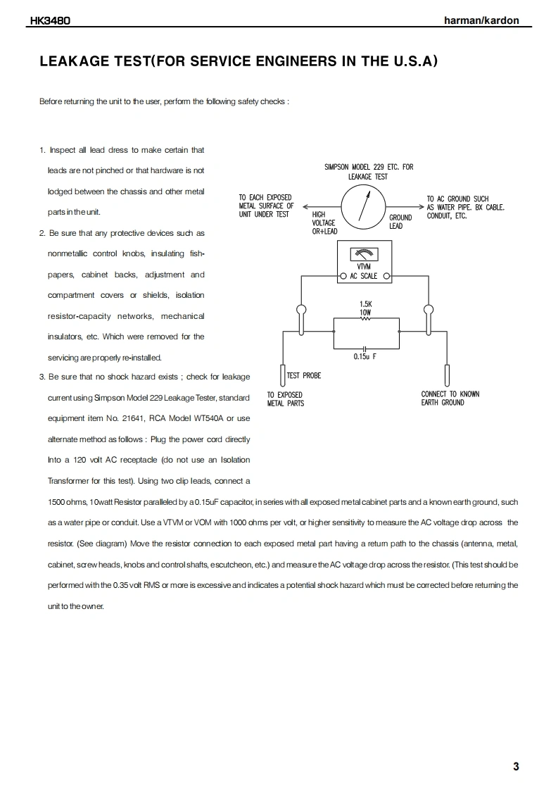 harman/kardonHK3480STEREO RECEIVERSERVICE MANUALK3圆三FH87.58NHz01日目。光址的数的则0VMA⊙o0⊙60⊙6harman/kardon⊙⊙0CONTENTSESD WARNING...DISASSEMBLY PROCEDURES................17LEAKAGE TESTING...3EXPLODED VIEW..2SPECIFICATIONS...........4BLOCK DIAGRAM.......21FRONT PANEL CONTROLS....5FRONT PANEL DISPLAY.....2REAR PANEL CONNECTIONS.8IC DESCRIPTIONS/PINOUTS......6REMOTE CONTROL FUNCTIONS........10ELECTRICAL PARTS LIST....................40TROUBLESHOOTING GUIDE...............12pcB DRAWINGS...46PROCESSOR RESET.........................12SCHEMATICS.........48AMPLIFIER BIAS ADJUSTMENT...............13WIRING DIAGRAM..5.4BULLETIN HK2003-10..14PACKAGE.............55BULLETIN HK2004-02.......................16hamman/kardon,Inc.250 Crossways Park Dr.Woodbury,New York 11797Rev18/2004