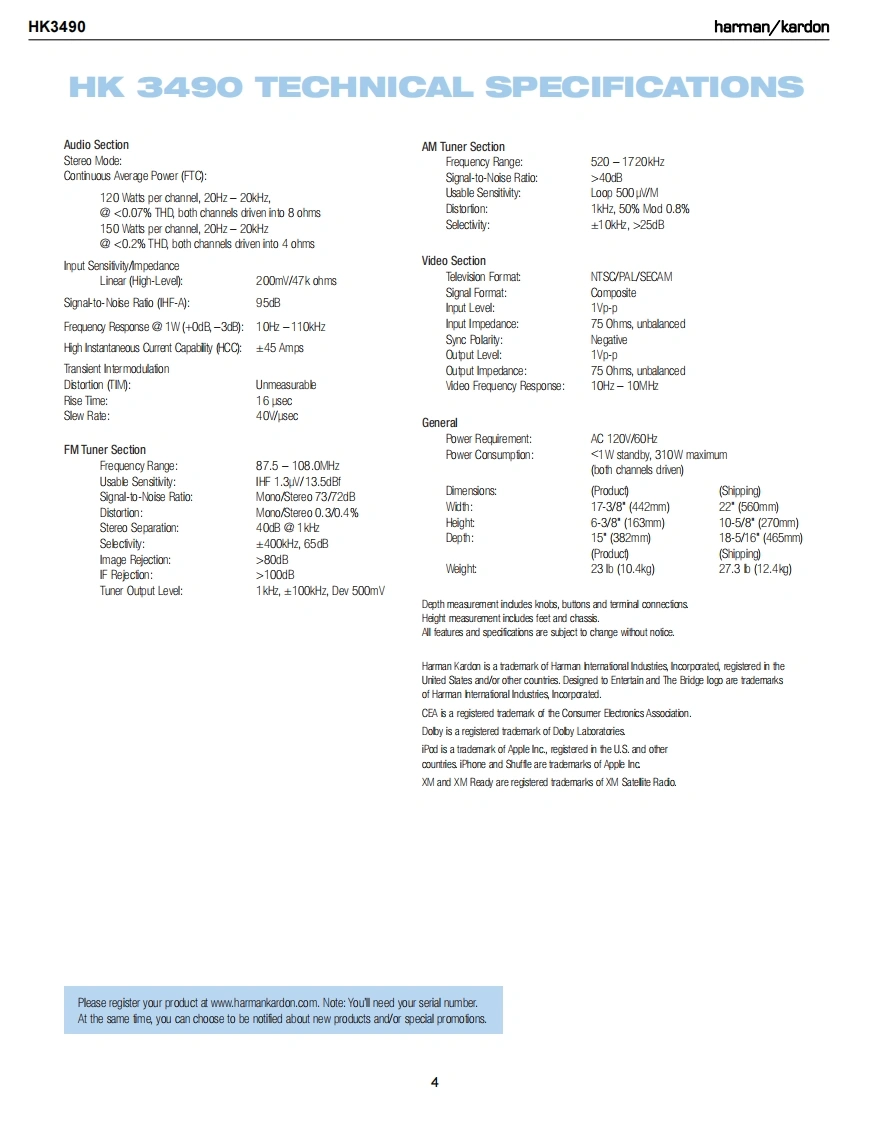 harman/kardonHK3490STEREO RECEIVERSERVICE MANUALHK回CD/OPTICALSPK 1+2 VIRTUALharman/kardono aCONTENTSESD WARNING.DISASSEMBLY.27LEAKAGE TESTING.........3UNIT EXPLODED VIEW...................30BASIC SPECIFICATIONS..................4EXPLODED VIEW PARTS LIST..............31PACKAGING.5AMP BIAS ADJUSTMENT..............32FRONT PANEL CONTROLS.........6BLOCK DIAGRAM............33REAR PANEL CONNECTIONS.....8PCB DRAWINGS..............34REMOTE CONTROL FUNCTIONS..........11ELECTRICAL PARTS LIST...................40CONNECTIONS/INSTALLATION.............14SEMICONDUCTOR PINOUTS..............63OPERATION.21SCHEMATICS..104TROUBLESHOOTING GUIDE...........26WIRING DIAGRAM.............................108PROCESSOR RESET........................26hamman/kardon,Inc.250 Crossways Park Dr.Released 2008Woodbury,New York 11797Rev06/2008Discontinued XXXX