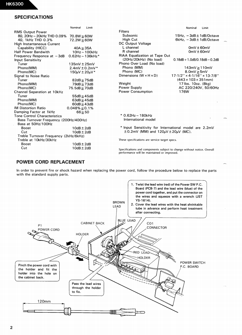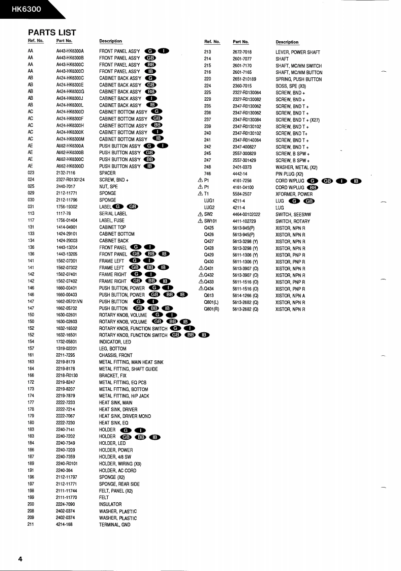 The Harman KardonModel HK6300Manual 145AINTEGRATED AMPLIFIERTechnical ManualThe following marks found in the parts list of this manual identifythe models as follows.German modelGerman model Black versionInternational modelInternational model Black versionAustralian model Black versionHK6300harman/kardon240 Crossways Park West.Woodhury.N.Y.11 /971112.3152145A8P-0889051500 Pninted in Jap8n