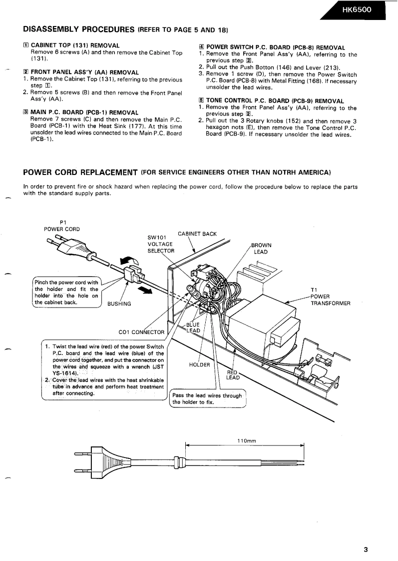 The Harman KardonModel HK6500Manual 147AINTEGRATED AMPLIFIERTechnical Manualhurman kazign HKS5004苏心心0苏香·The following marks found in the parts list of this manual identifythe models as follows.North America area model Black versionGerman modelGerman model Black versionJapan model Black version3Australian model Black versionInternational modelInternational model Black versionharman/kardon240 Crossways Park West.Woodbury.N.Y.11 7971112-3152147A0户.0889051500 Print6d1 n JapanHK6500