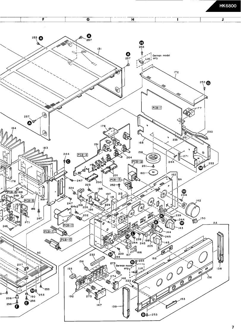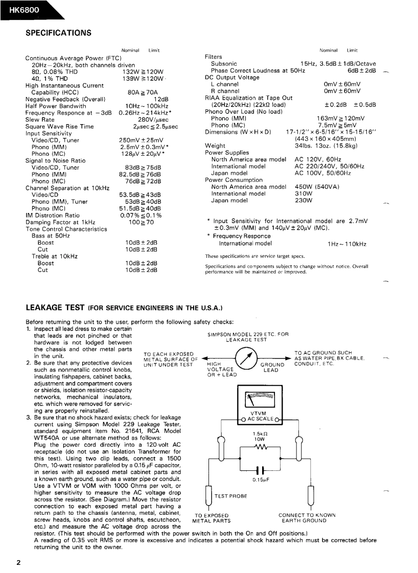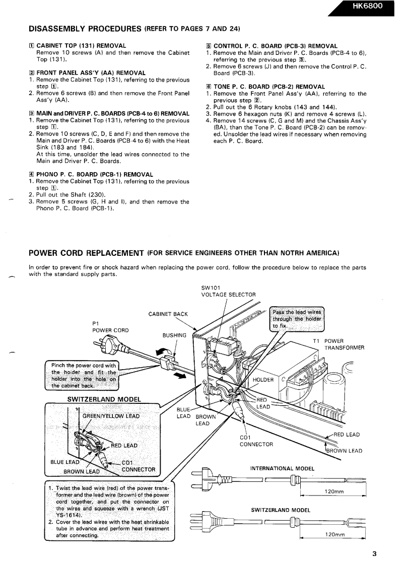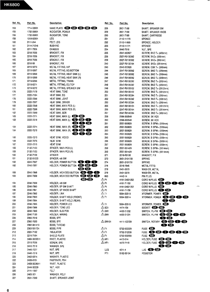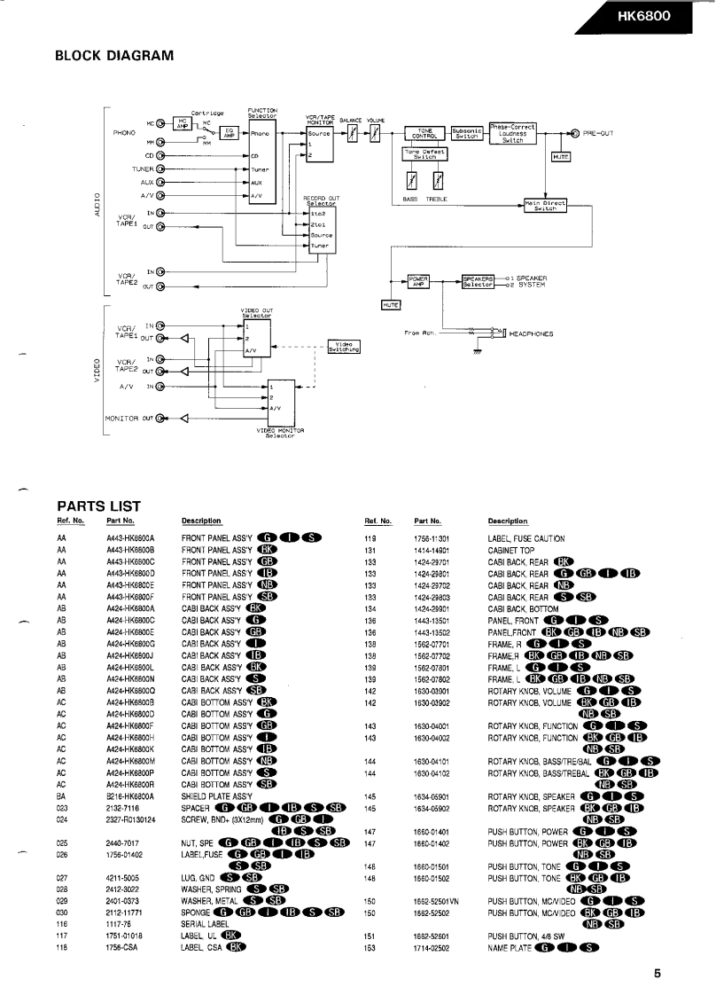 The Harman KardonModel HK6800Manual 149AINTEGRATED AMPLIFIERTechnical Manual是1W4hamman/kardonThe following marks found in the parts list of this manual identifythe models as follows.North America area model Black versionG●:German modelGerman model Black version●:International modelInternational model Black versionJapan model Black versionSwitzerland modelSwitzerland model Black versionharman/kardon7929a6poo81