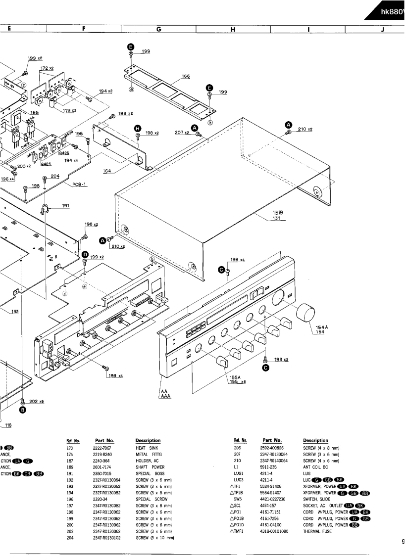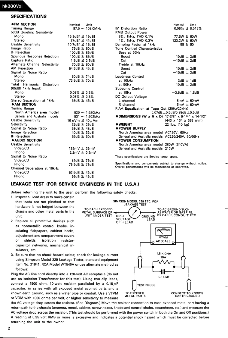 The Harman KardonModel hk880VxiManual 134AHIGH VOLTAGE/HIGH CURRENTSTEREO RECEIVERT不echnical Manual白白中白白白凸8B88口。吕0①不示示(○The following marks found in the parts list of this manual identifythe models as follows.North America area modelNorth America area model Black versionGeneral modelGB:General model Black versionhk880VxiAustralia model Black versionharman/kardon240 Crossways Park West.Woodbury.N.Y.117971112-3152134A8 P-078803 1500 Printed in Japan
