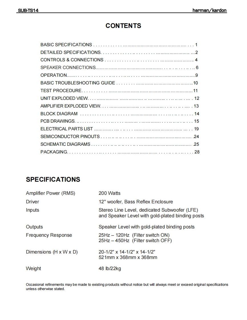 哈曼卡顿Harman-Kardon-HKTS-14-维修手册找手册网16天前发布关注私信1.25MB29页029哈曼卡顿Harman-Kardon-HKTS-14-维修手册此内容为付费资源,请付费后查看¥19¥21黄金会员免费钻石会员免费登录购买付费资源 第1页 / 共29页 第2页 / 共29页 第3页 / 共29页 第4页 / 共29页 第5页 / 共29页 第6页 / 共29页 第7页 / 共29页 第8页 / 共29页 第9页 / 共29页 第10页 / 共29页 试读已结束,还剩19页,您可下载完整版后进行离线阅读 THE END哈曼卡顿/飞利浦 文本预览 harman/kardonSUB-TS14(HKTS 14 SUBWOOFER)SERVICE MANUALnaran/kardonharman/kardon,Inc.250 Crossways Park Dr.Woodbury,New York 11797Rev110/2005 查看更多 收起部分 喜欢就支持一下吧收藏