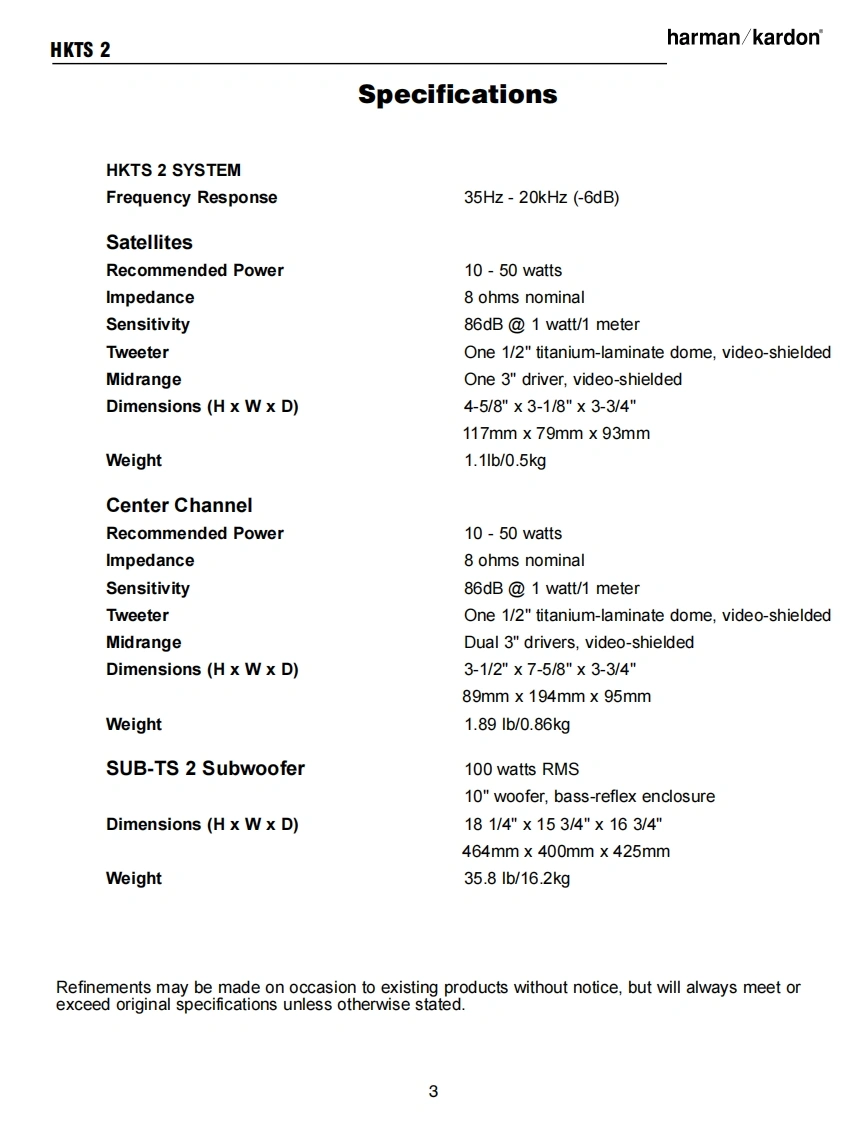 哈曼卡顿Harman-Kardon-HKTS-2-维修手册找手册网16天前发布关注私信2.24MB23页039哈曼卡顿Harman-Kardon-HKTS-2-维修手册此内容为付费资源,请付费后查看¥19¥21黄金会员免费钻石会员免费登录购买付费资源 第1页 / 共23页 第2页 / 共23页 第3页 / 共23页 第4页 / 共23页 第5页 / 共23页 第6页 / 共23页 第7页 / 共23页 第8页 / 共23页 第9页 / 共23页 第10页 / 共23页 试读已结束,还剩13页,您可下载完整版后进行离线阅读 THE END哈曼卡顿/飞利浦 文本预览 harman/kardonHKTS 2Home Theater Speaker SystemSERV CE MANUALHarman/Kardon Incorporated250 Crossways Park Dr.Rev512/2004Woodbury,New York 11797 查看更多 收起部分 喜欢就支持一下吧收藏