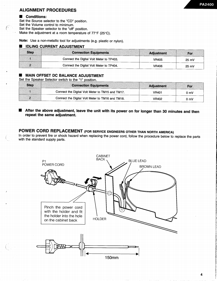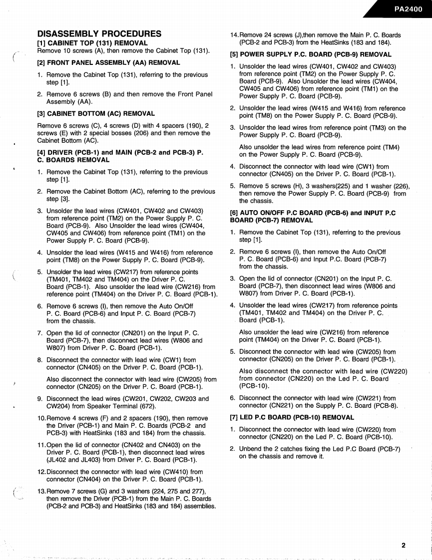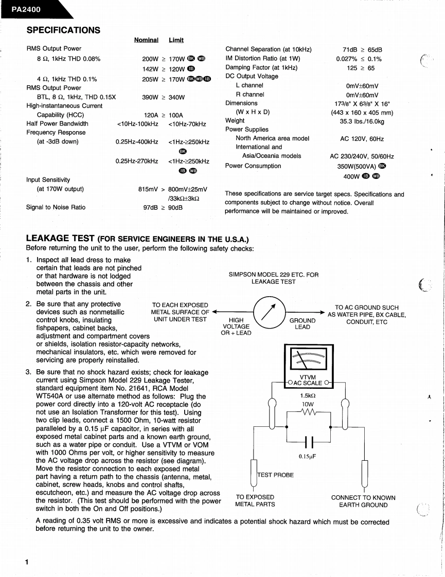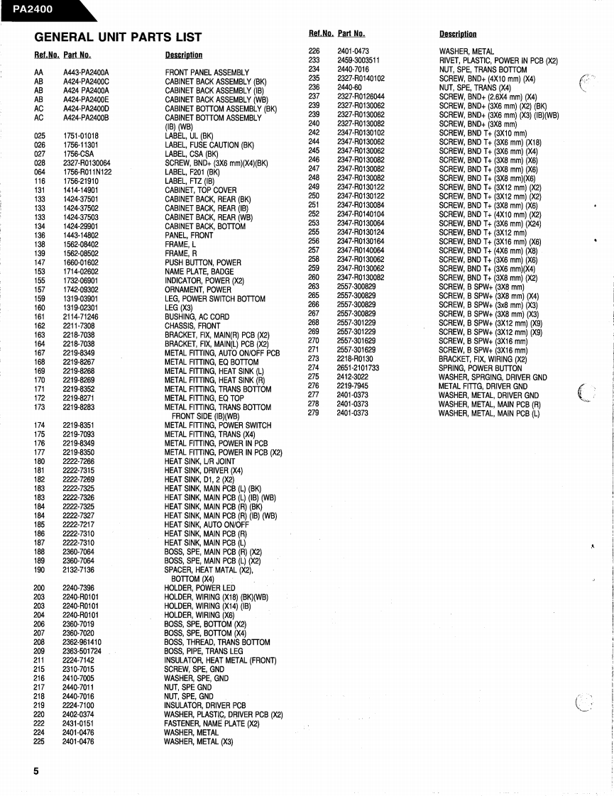 The Harman KardonModel PA2400Manual ASTEREO POWER AMPLIFIERTechnical Manualharman/kardonPA2400The following marks found in the parts list of this manualidentify the models as follows:North America area model Black versionWorld model Black version⑥:International model Black versionharman/kardonService and Parts Department240 Crossways Park West,Woodbury,N.Y.117971112-PA2400-A P9308 1200 Printed in USA