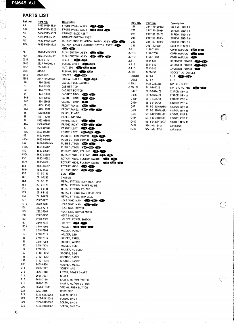 The Harman KardonModel PM645 VxiManual 120ASTEREO INTEGRATED AMPLIFIERTechnical ManualPM645 Vxi后口五告心而苏苏The following marks found in the parts list of this manual identifythe models as follows.North America area modelNorth America area model Black versionGeneral modelGeneral model Black versionJapan modelharman/kardon240 Crossways Park West,Woodbury,N.Y.117971112-3152120A4P-0887101500 Printed in J8p9n