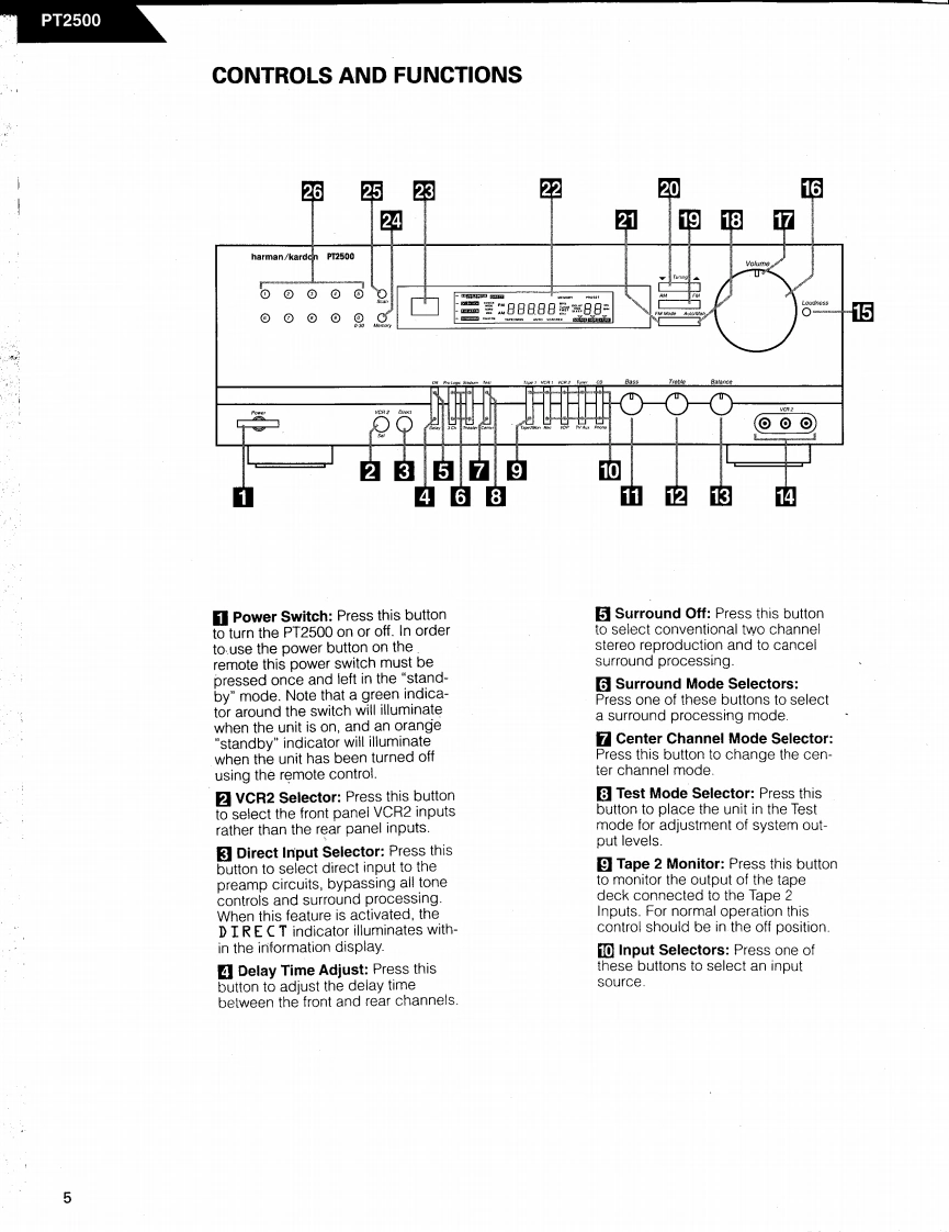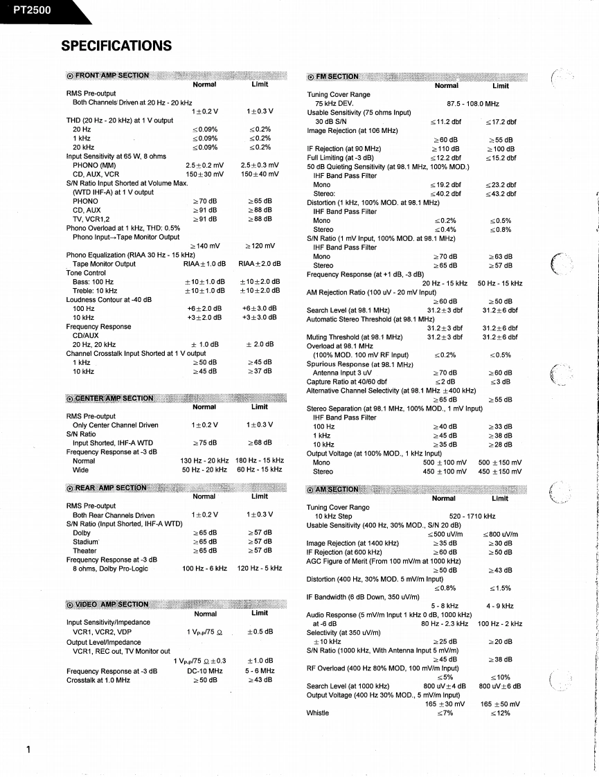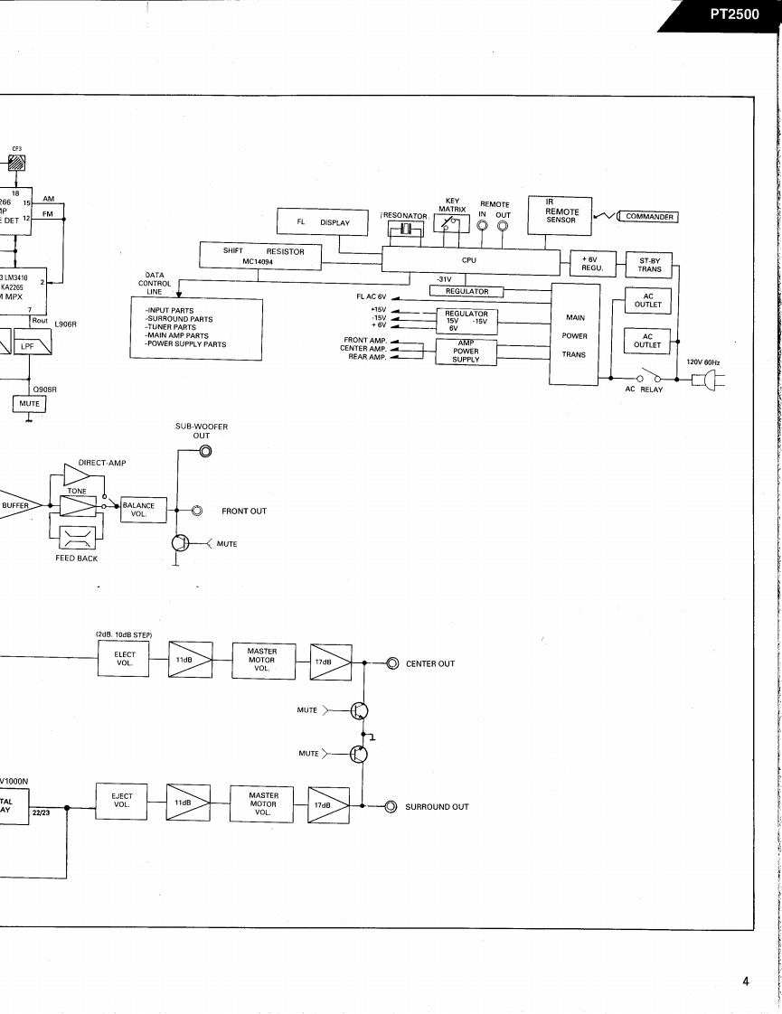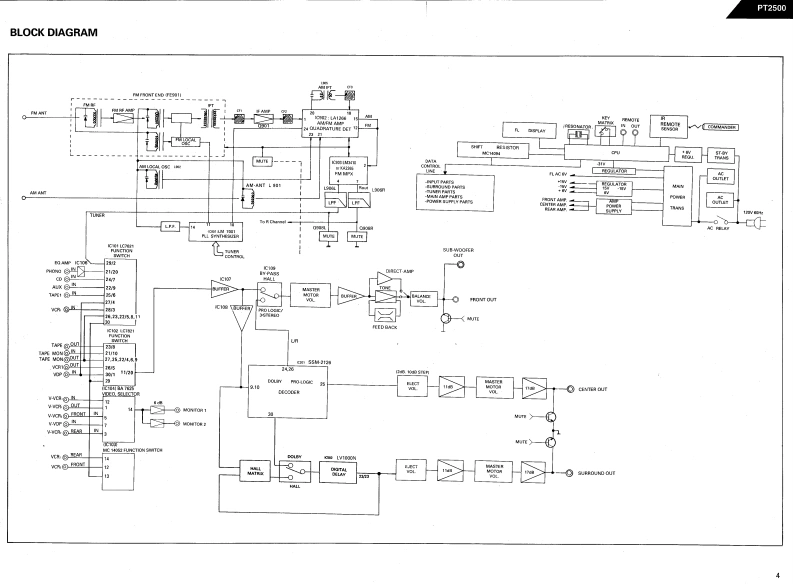 The Harman KardonModel PT2500Manual AA/V SURROUND TUNER CONTROLLERTechnical Manualharman/kardon PT2500⊙0⑧g▣g三里:88888886u⊙o可■CONTENTSSPECIFICATIONS…1PRINTED CIRCUIT BOARDS.........2LEAKAGE TEST…3ELECTRICAL PARTS LIST............28BLOCK DIAGRAM…IC FUNCTIONAL BLOCK DIAGRAM…32CONTROLS AND FUNCTIONS44…5WIRING DIAGRAM............................38DISASSEMBLY PROCEDURES................6SCHEMATIC DIAGRAM(④…39CIRCUIT DESCRIPTION…8SCHEMATIC DIAGRAM (ID).40ALIGNMENT PROCEDURES..................17SCHEMATIC DIAGRAM(I)…41TROUBLESHO0TlNG…20REAR PANEL CONNECTIONS……42GENERAL UNIT PARTS LIST…23PACKAGE…43GENERAL UNIT EXPLODED VIEW.............24harman/kardonParts and Service Office80 Crossways Park West,Woodbury,N.Y.117971112-PT2500 G9711 1200 Printed in Korea