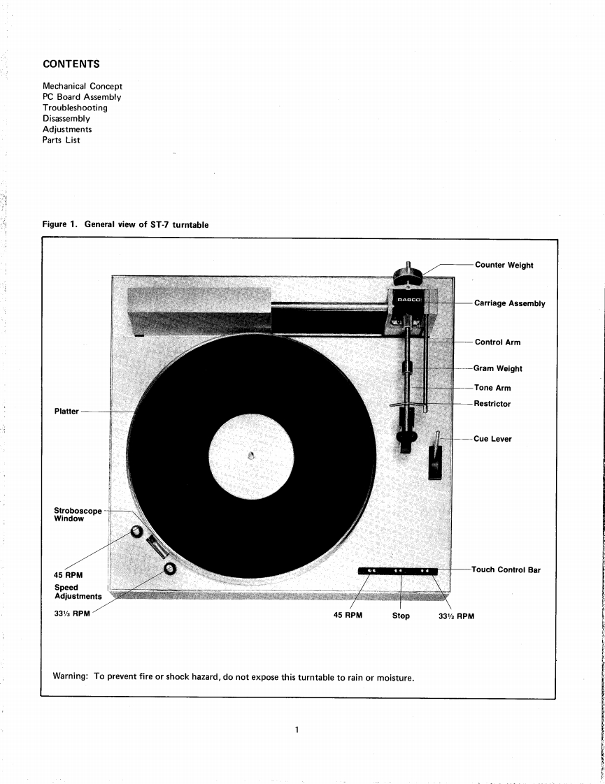 RABCO ST-7Straight LineTracking SystemTechnical ManualWARNINGThese technical instructions are for use by qualified service personnel only.To avoid electric shock,do notperform any servicing other than that contained in the operating instructions unless qualified to do so.harman/kardon