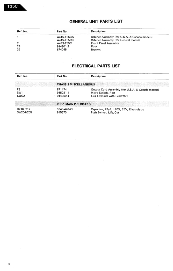 The Harman KardonModel T35CManual No.71BAUTO-LIFT TURNTABLETechnical ManualSUPPLEMENTARY MANUALTHE MODEL T35C IS IDENTICAL TO THE MODEL T35 EXCEPT FOR AN ADDED CUT SWITCH ANDOTHER PART CHANGES AS NOTED IN THIS SUPPLEMENT.REFER TO SERVICE MANUAL NO.71AFOR ALL OTHER PARTS AND SERVICE INFORMATION.harman/kardonWEST.WOODBURY.N.Y.117971112-H15271B3P-088491650 PRINTE01 N JAPAN