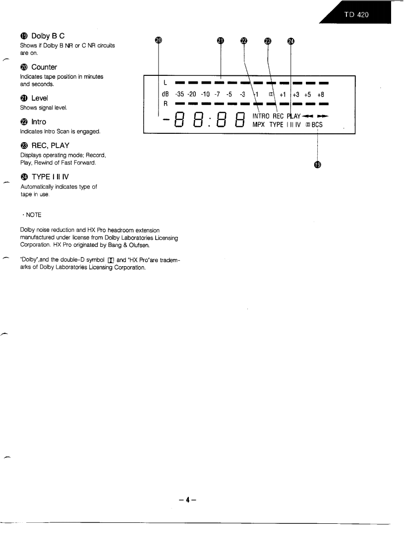 TD420The Harman KardonModel TD420ManualCD TRANSCRIPTION QUALITY CASSETTE DECKTechnical Manualharman kardon-8B:88wwrd女⊙⊙⊙⊙⊙⊙O⊙⊙The following marks found in the parts list of this manualldentify the models as follows.North America area model Black versionInternational modelInternational model Black versionharman /kardon80 Crossways Park West,Woodbury,N.Y.117971112-TD420 P-0595 800 Printed In KOREA