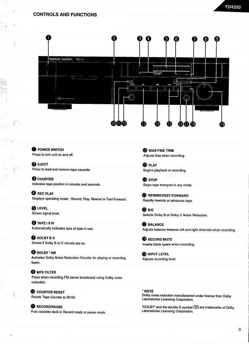 The Harman KardonModel TD4200Manual 161ACD TRANSCRIPTION QUALITY CASSETTE DECKTechnical ManualTD4200harman kardon TOV200The following marks found in the parts list of this manualidentify the models as follows.North America area model Black versionInternational modelInternational model Black versionGerman modelG®:German model Black versionAustralia model Black versionharman/kardon240 Crossways Park West,Woodbury,N.Y.117971112-3152161A4P-1190102000 Printed in Japan