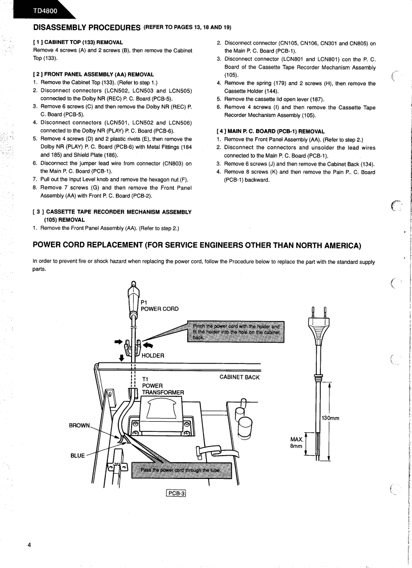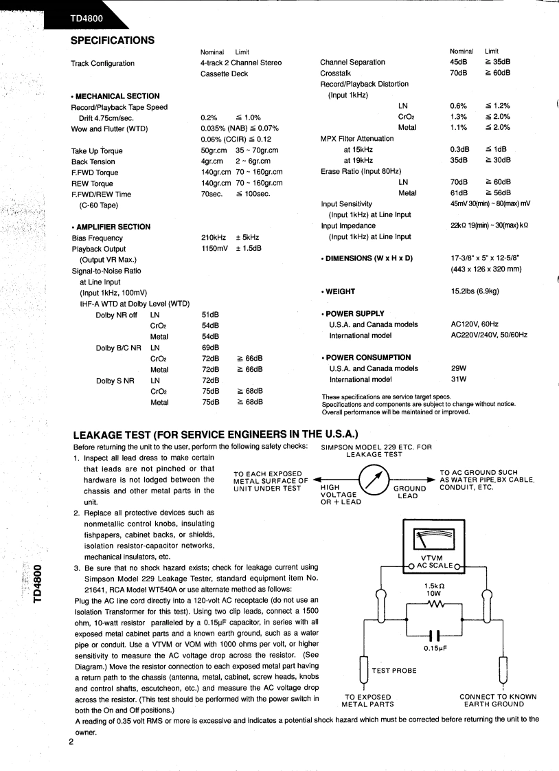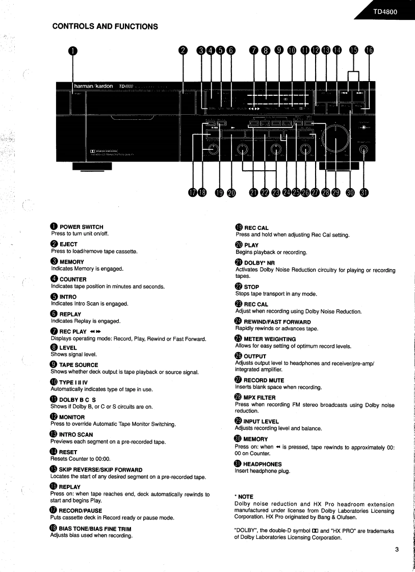 The Harman KardonModel TD4800Manual 165A3 HEADS CD TRANSCRIPTION QUALITY CASSETTE DECKTechnical Manualharman kardon TOThe following marks found in the parts list of this manualidentify the models as follows.North America area modelNorth America area model Black version0International model®International model Black versionTD4600harman/kardon240 Crossways Park West,Woodbury,N.Y.117971112-3152165A8P-1190122000 Printed in Japan