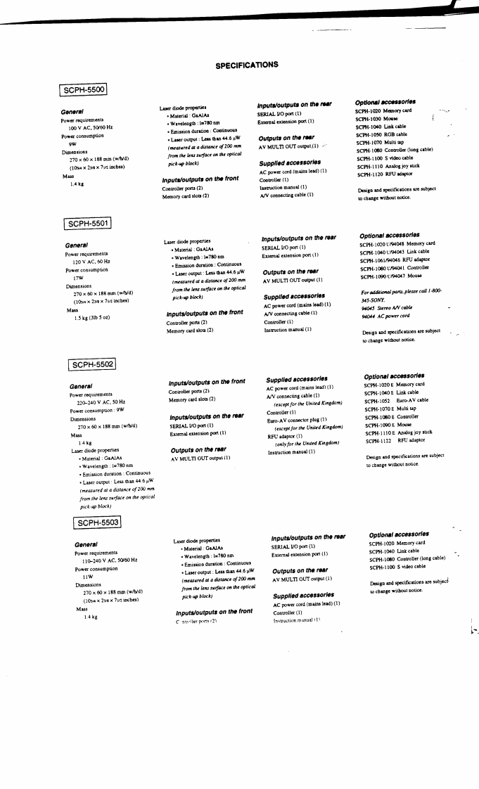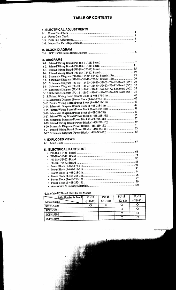 SCPH-5500/5501/5502/5503〔PU-18(-11/-21·-31/41·-52-62·-72-82)〕SERVICE MANUALJapan ModelSCPH-5500US/Canada ModelSCPH-550Australia ModelSCPH-5502AUK ModelSCPH-5502BAEP ModelSCPH-5502CAsian ModelSCPH-550300992701501不許複製Reproduction prohibited