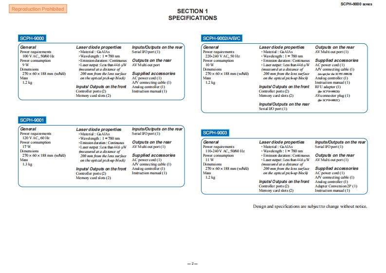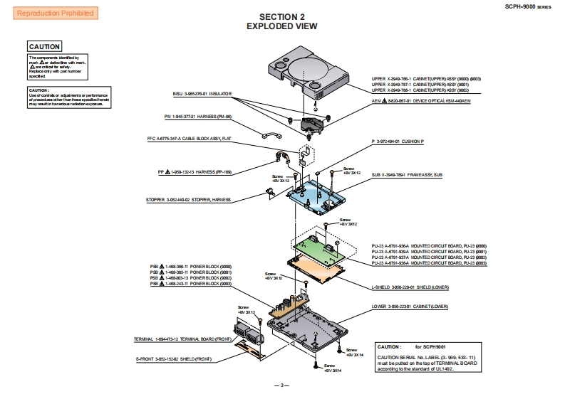 SCPH-9000 sREsSCPH-9000SERIESSERVICE MANUALJapan Model50H9000US/Canada Model3rd EditionSCPH-D00IAustralia ModelSCPH-DORAUK ModelSCPH90228AEP ModelAsia ModelSCH-PO0Reproduction ProhibitedRegistered No.Sony Com puter Entertainment Inc.0ed9aceD0¥19a.5 rirtad in Japan09027-00-01Sony Computer Emertainmant EuropePlayStation.
