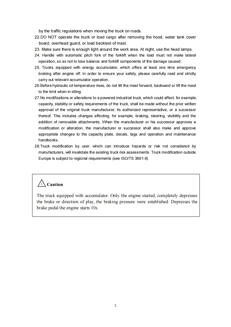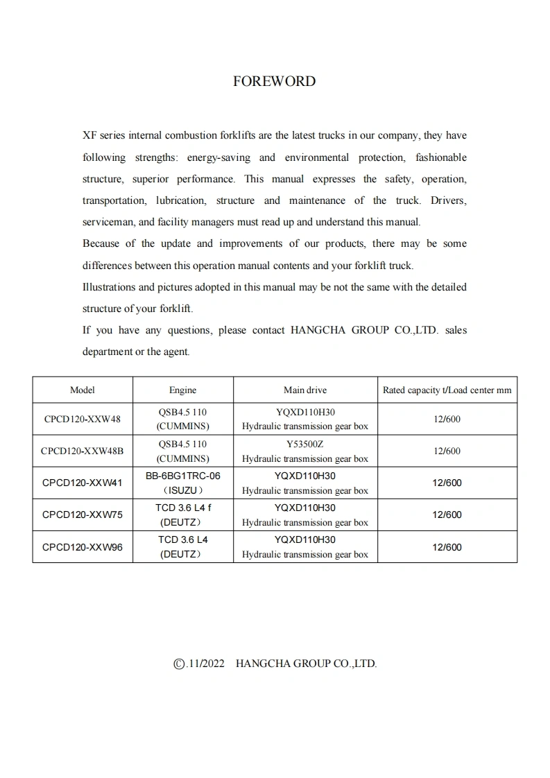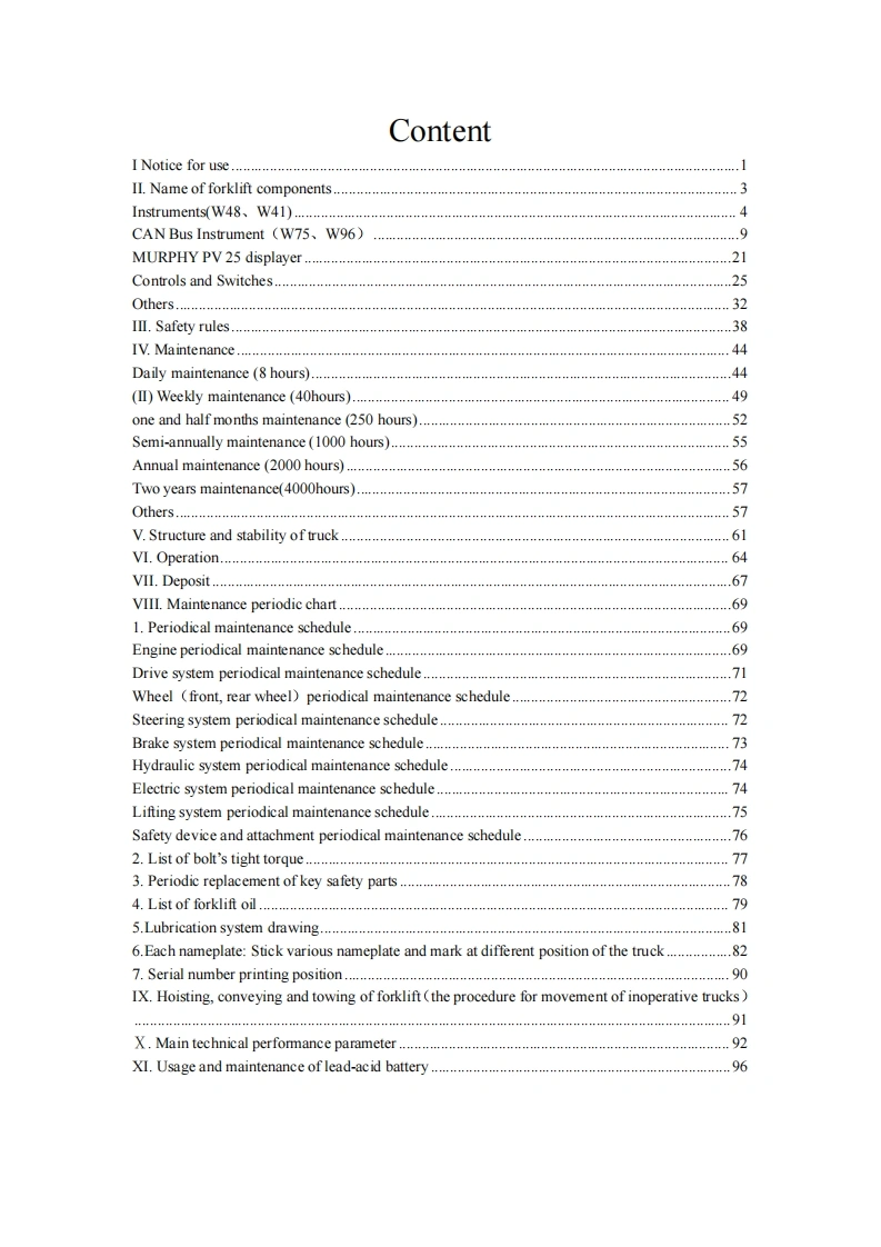 杭州叉车OMM-CPCD120-XXW96零部件和维修手册含电器原理图和液压原理图找手册网16天前发布关注私信6.82MB114页029杭州叉车OMM-CPCD120-XXW96零部件和维修手册含电器原理图和液压原理图此内容为付费资源,请付费后查看¥29¥31黄金会员免费钻石会员免费登录购买付费资源 第1页 / 共114页 第2页 / 共114页 第3页 / 共114页 第4页 / 共114页 第5页 / 共114页 第6页 / 共114页 第7页 / 共114页 第8页 / 共114页 第9页 / 共114页 第10页 / 共114页 试读已结束,还剩104页,您可下载完整版后进行离线阅读 THE END杭州叉车/Dino/Bao-li叉车/现代 文本预览 必XF seriesXF series 12tInternal Combustion Counterbalanced Forklift TruckOPERATION AND MAINTENANCEMANUAL(€Original InstructionHANGCHA GROUP CO.,LTD.09/2023 查看更多 收起部分 喜欢就支持一下吧收藏