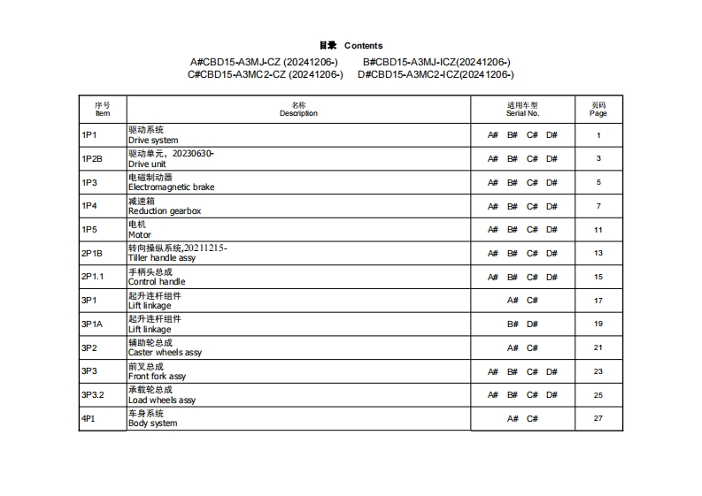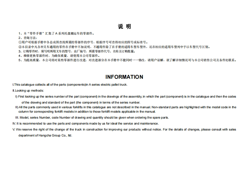 杭州叉车Parts-Catalog-CBD15-A3MC2-(I)CZ零部件和维修手册含电器原理图和液压原理图找手册网16天前发布关注私信5.78MB88页036杭州叉车Parts-Catalog-CBD15-A3MC2-(I)CZ零部件和维修手册含电器原理图和液压原理图此内容为付费资源,请付费后查看¥29¥31黄金会员免费钻石会员免费登录购买付费资源 第1页 / 共88页 第2页 / 共88页 第3页 / 共88页 第4页 / 共88页 第5页 / 共88页 第6页 / 共88页 第7页 / 共88页 第8页 / 共88页 第9页 / 共88页 第10页 / 共88页 试读已结束,还剩78页,您可下载完整版后进行离线阅读 THE END杭州叉车/Dino/Bao-li叉车/现代 文本预览 A SeriesCBD15-A3MJ-CZ托盘搬运车CBD15-A3MJ-ICZCBD15-A3MC2-CZELECTRIC PALLET TRUCKCBD15-A3MC2-ICZ·零件目录PARTS CATALOG杭叉集团股份有限公司HANGCHA GROUP CO.,LTD.Revision Date:04/2025 查看更多 收起部分 喜欢就支持一下吧收藏