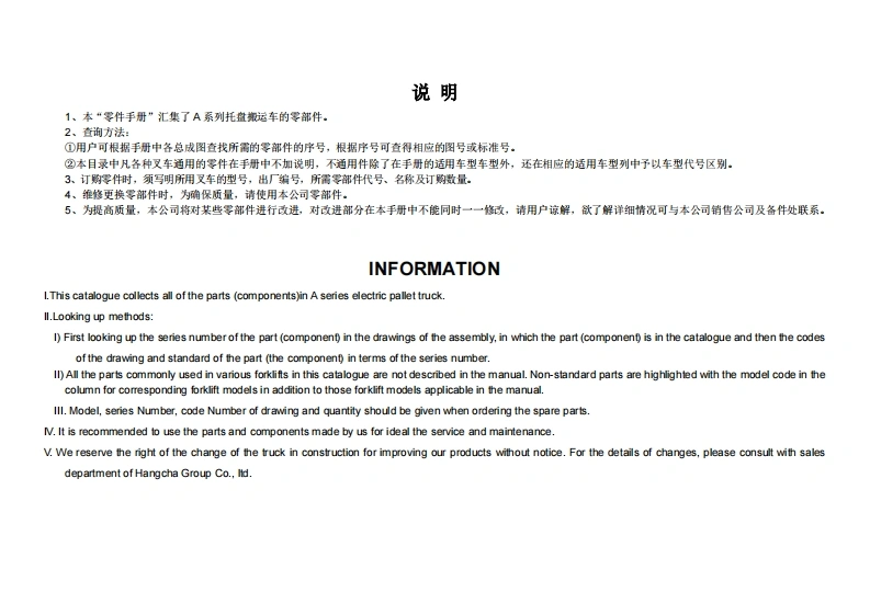 杭州叉车Parts-Catalog-CBD15-A3MC2-I零部件和维修手册含电器原理图和液压原理图找手册网16天前发布关注私信5MB92页038杭州叉车Parts-Catalog-CBD15-A3MC2-I零部件和维修手册含电器原理图和液压原理图此内容为付费资源,请付费后查看¥29¥31黄金会员免费钻石会员免费登录购买付费资源 第1页 / 共92页 第2页 / 共92页 第3页 / 共92页 第4页 / 共92页 第5页 / 共92页 第6页 / 共92页 第7页 / 共92页 第8页 / 共92页 第9页 / 共92页 第10页 / 共92页 试读已结束,还剩82页,您可下载完整版后进行离线阅读 THE END杭州叉车/Dino/Bao-li叉车/现代 文本预览 A Series托盘搬运车CBD15-A3MC1-1ELECTRIC PALLET TRUCKCBD15-A3MC2-1零件目录PARTS CATALOG杭叉集团股份有限公司HANGCHA GROUP CO.,LTD.Revision Date:04/2025 查看更多 收起部分 喜欢就支持一下吧收藏
