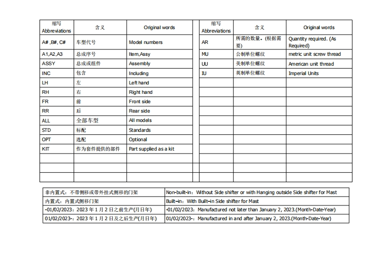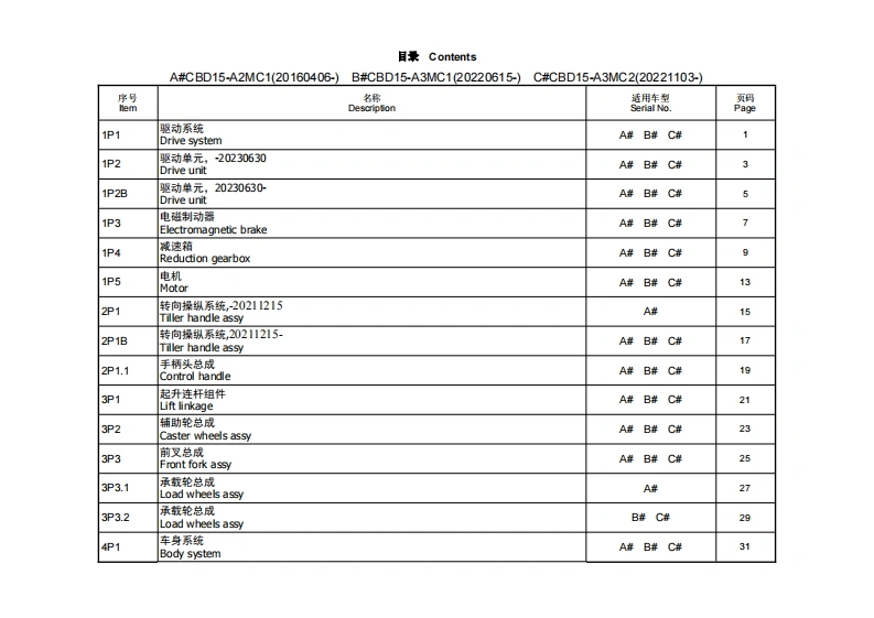 杭州叉车Parts-Catalog-CBD15-A3MC2零部件和维修手册含电器原理图和液压原理图找手册网16天前发布关注私信7.63MB136页034杭州叉车Parts-Catalog-CBD15-A3MC2零部件和维修手册含电器原理图和液压原理图此内容为付费资源,请付费后查看¥29¥31黄金会员免费钻石会员免费登录购买付费资源 第1页 / 共136页 第2页 / 共136页 第3页 / 共136页 第4页 / 共136页 第5页 / 共136页 第6页 / 共136页 第7页 / 共136页 第8页 / 共136页 第9页 / 共136页 第10页 / 共136页 试读已结束,还剩126页,您可下载完整版后进行离线阅读 THE END杭州叉车/Dino/Bao-li叉车/现代 文本预览 A Series托盘搬运车CBD15-A2MC1CBD15-A3MC1ELECTRIC PALLET TRUCKCBD15-A3MC2零件目录PARTS CATALOG杭叉集团股份有限公司HANGCHA GROUP CO.,LTD.Revision Date:05/2025 查看更多 收起部分 喜欢就支持一下吧收藏