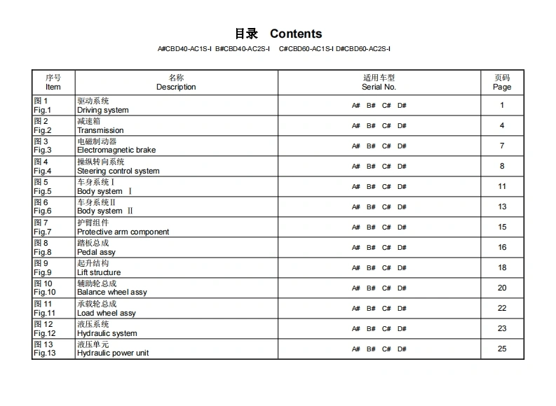 杭州叉车Parts-Catalog-CBD40-60-AC2S-I零部件和维修手册含电器原理图和液压原理图找手册网16天前发布关注私信4.11MB43页048杭州叉车Parts-Catalog-CBD40-60-AC2S-I零部件和维修手册含电器原理图和液压原理图此内容为付费资源,请付费后查看¥29¥31黄金会员免费钻石会员免费登录购买付费资源 第1页 / 共43页 第2页 / 共43页 第3页 / 共43页 第4页 / 共43页 第5页 / 共43页 第6页 / 共43页 第7页 / 共43页 第8页 / 共43页 第9页 / 共43页 第10页 / 共43页 试读已结束,还剩33页,您可下载完整版后进行离线阅读 THE END杭州叉车/Dino/Bao-li叉车/现代 文本预览 A Series托盘搬运车CBD40-AC1S-ICBD40-AC2S-IELECTRIC PALLET TRUCKCBD60-AC1S-ICBD60-AC2S-I零件目录PARTS CATALOG杭叉集团股份有限公司HANGCHA GROUP CO..LTD.4/2023 查看更多 收起部分 喜欢就支持一下吧收藏