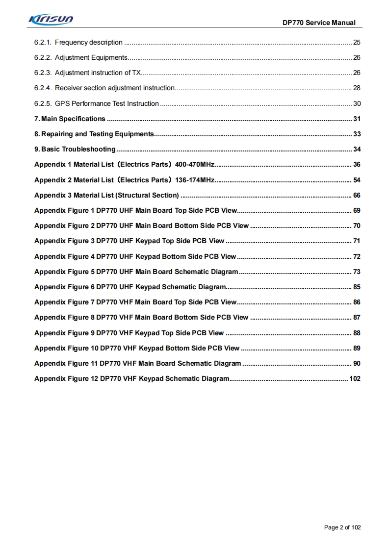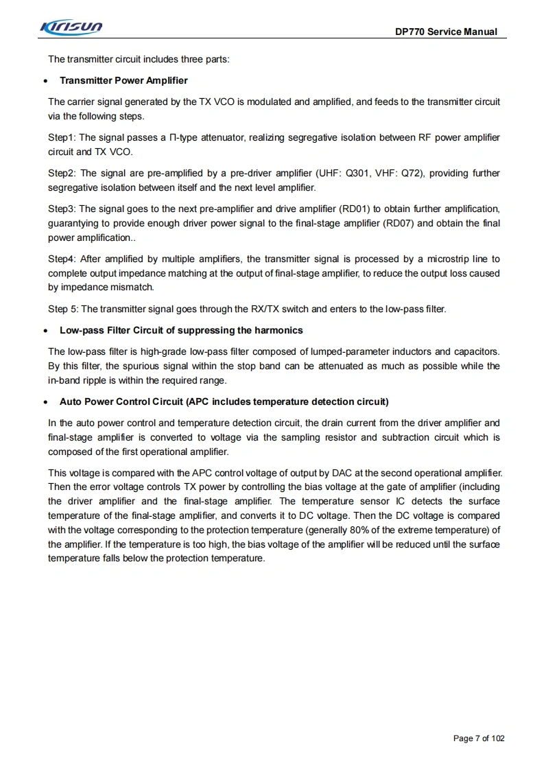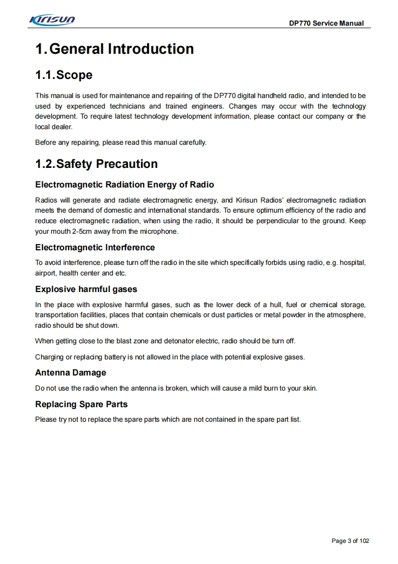 科立讯DP770-Service-Manual维修手册含电器原理图找手册网16天前发布关注私信11.91MB103页021科立讯DP770-Service-Manual维修手册含电器原理图此内容为付费资源,请付费后查看¥19¥21黄金会员免费钻石会员免费登录购买付费资源 第1页 / 共103页 第2页 / 共103页 第3页 / 共103页 第4页 / 共103页 第5页 / 共103页 第6页 / 共103页 第7页 / 共103页 第8页 / 共103页 第9页 / 共103页 第10页 / 共103页 试读已结束,还剩93页,您可下载完整版后进行离线阅读 THE END科立讯 文本预览 rUnProfessional wireless communication system solution supplierDP770SERVICE MANUALrisunV130923Kirisun Communications Co.,Ltd. 查看更多 收起部分 喜欢就支持一下吧收藏