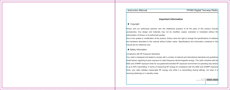 科立讯FP460-User-Manual操作说明书手册找手册网16天前发布关注私信11.74MB25页028科立讯FP460-User-Manual操作说明书手册此内容为付费资源,请付费后查看¥19¥21黄金会员免费钻石会员免费登录购买付费资源 第1页 / 共25页 第2页 / 共25页 第3页 / 共25页 第4页 / 共25页 第5页 / 共25页 第6页 / 共25页 第7页 / 共25页 第8页 / 共25页 第9页 / 共25页 第10页 / 共25页 试读已结束,还剩15页,您可下载完整版后进行离线阅读 THE END科立讯 文本预览 KnSUnINSTRUCTION MANUALFP460Digital Two-way Radio▣IGITAL1010000001001001D000030101101000KnsunKirisun Communications Co..Ltd.http://en.kirisun.comhttp://en.kirisun.com 查看更多 收起部分 喜欢就支持一下吧收藏