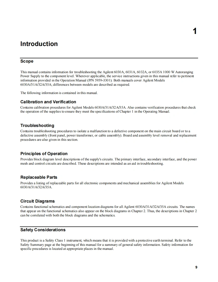 SERVICE MANUALAUTORANGINGSYSTEM DC POWER SUPPLYAGILENT MODELS 6030A,6031A,6032Aand6035AFOR INSTRUMENTS WITH SERIAL NUMBERSAgilent Model 6030A;Serials US38320301 and aboveAgilent Model 6031A;Serials US38310376 and aboveAgilent Model 6032A;Serials US38321026 and aboveAgilent Model 6035A;Serials US38320281 and aboveFor instruments with higher serial numbers,a change page may be included.…Agilent TechnologiesAgilent Part No.5959-3344Printed in USAMicrofiche Part No.5959-3345September,2000